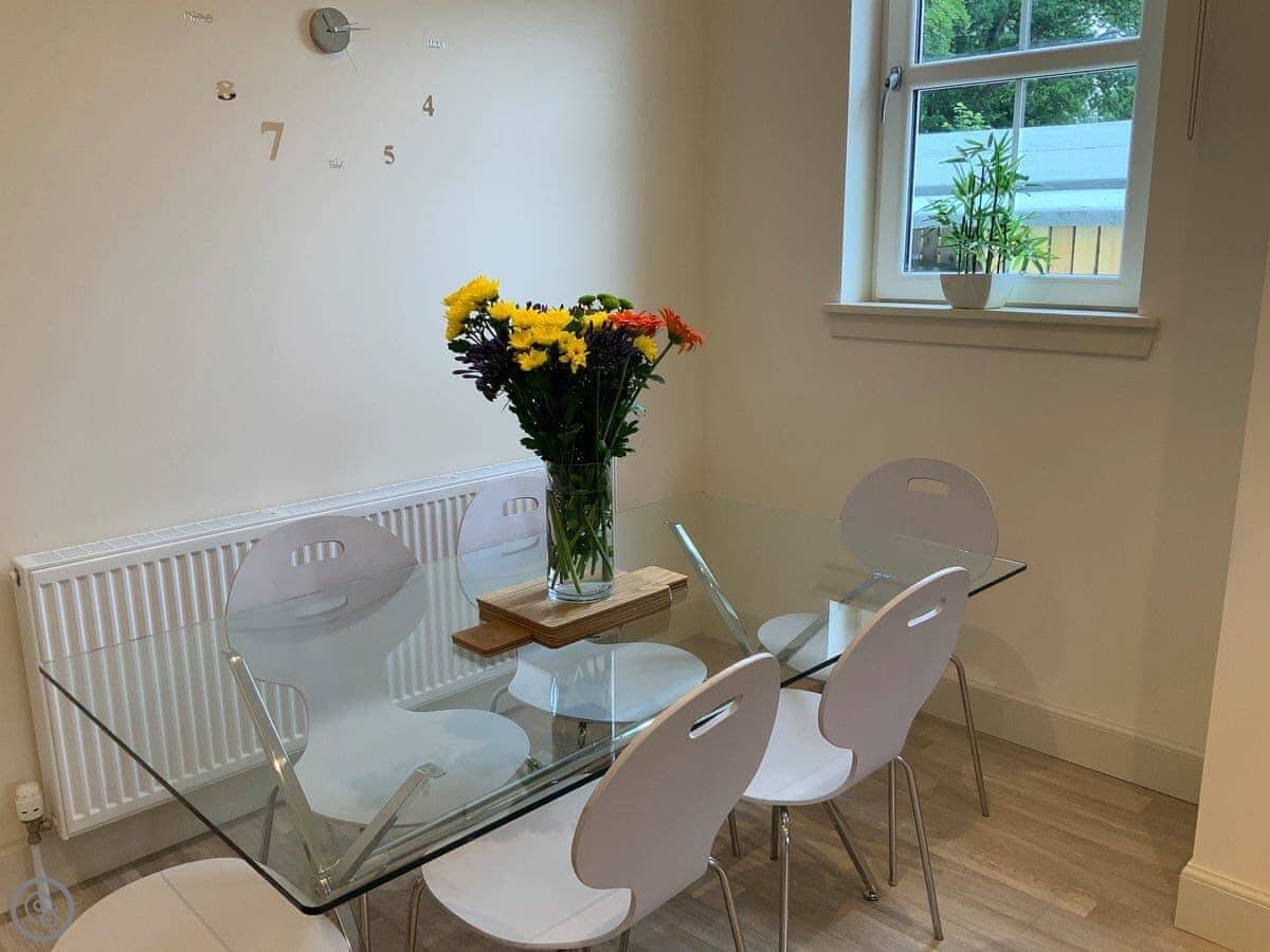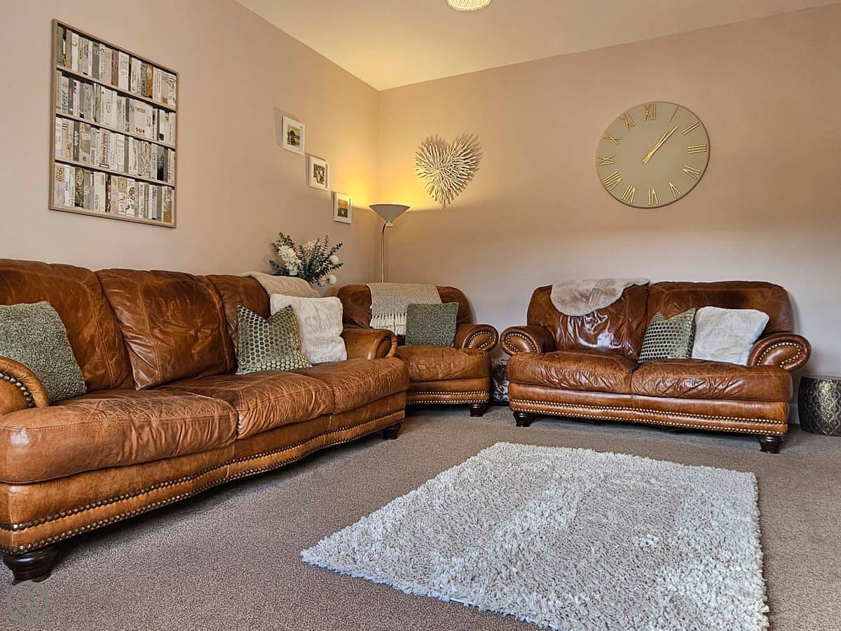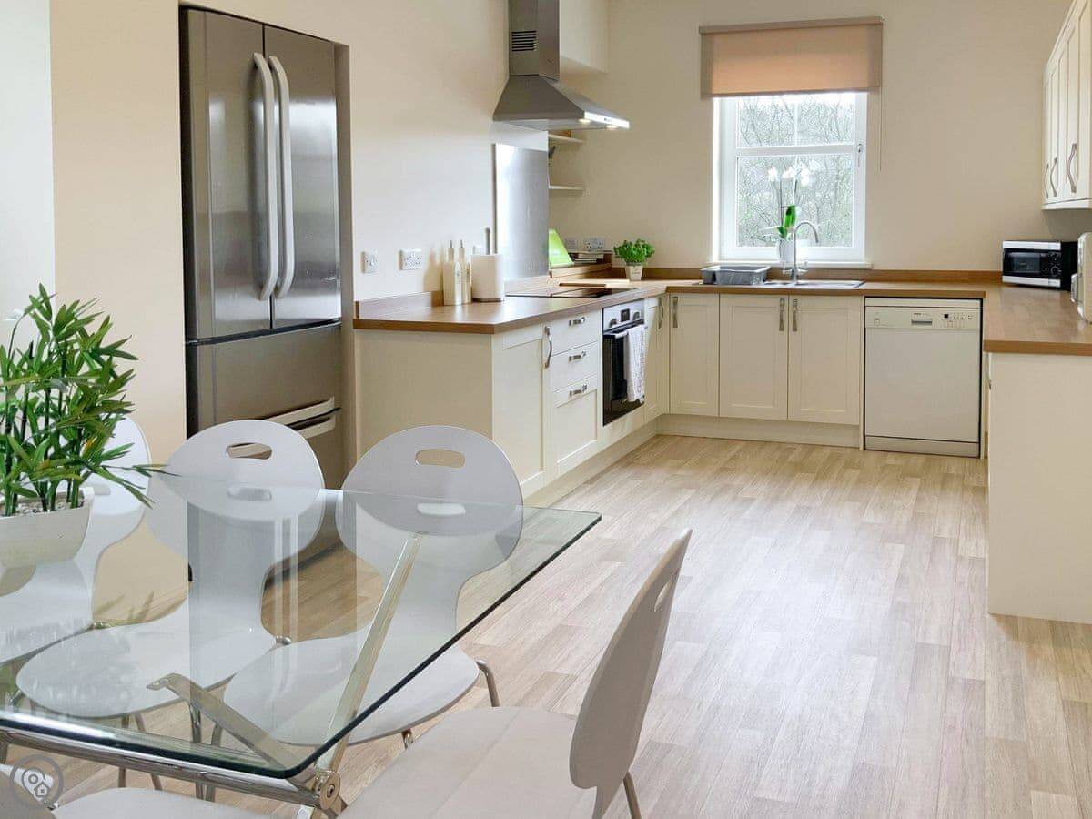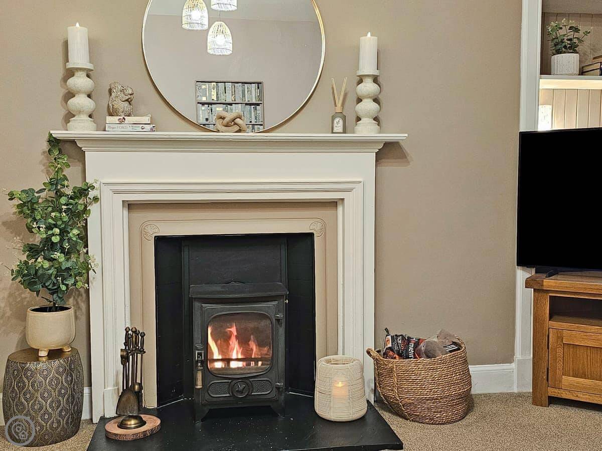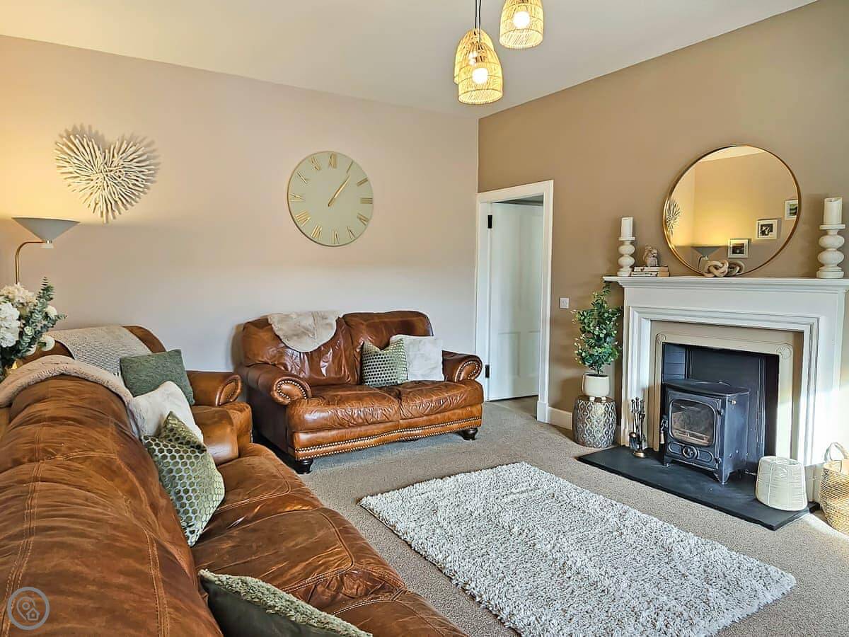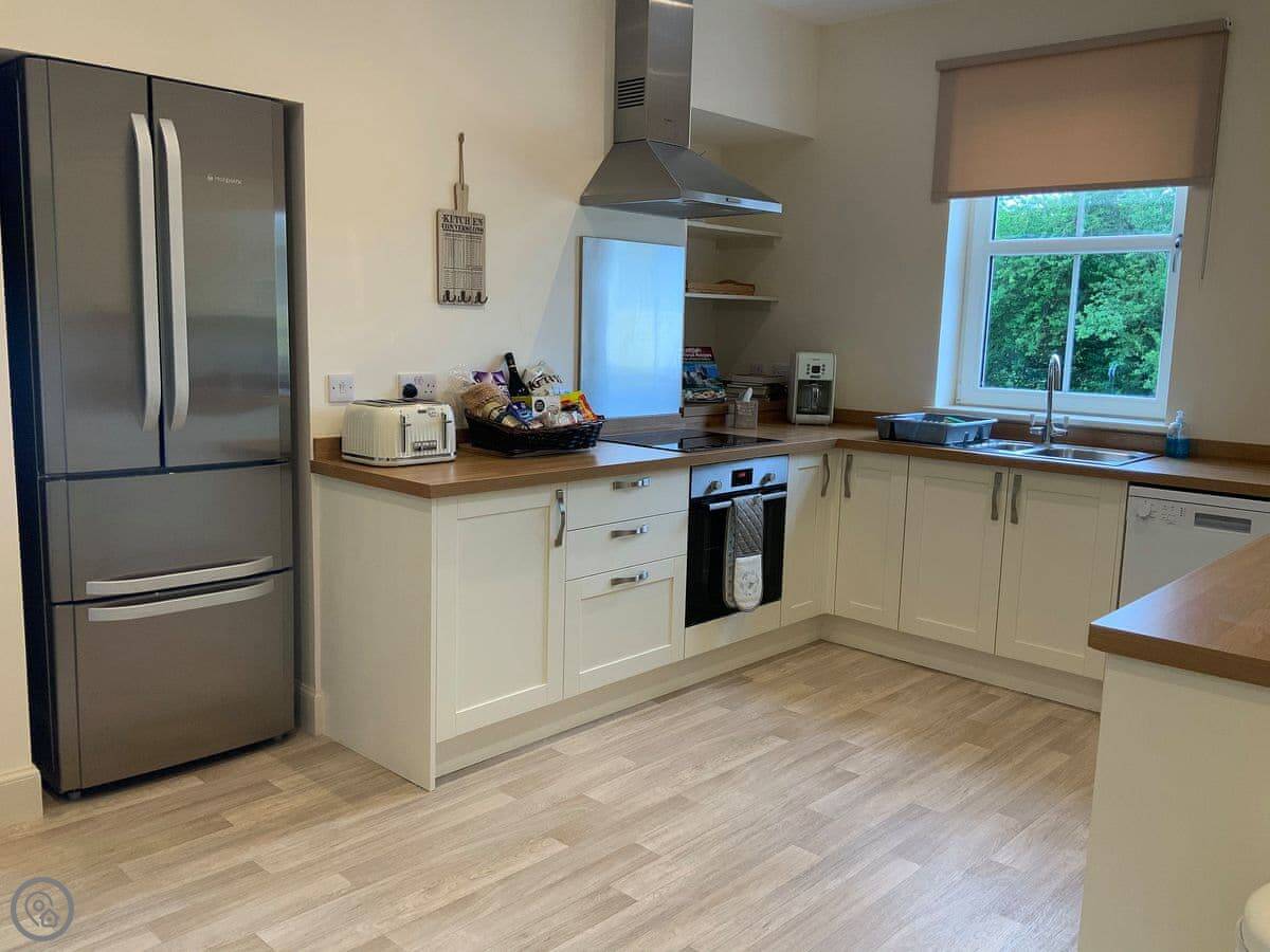 The kitchen is a decent size, and you look out over fields. There's a utility room with a washing machine and tumble dryer, which is useful. The living room has a wood burning stove. Logs aren't included, but you can get them locally.