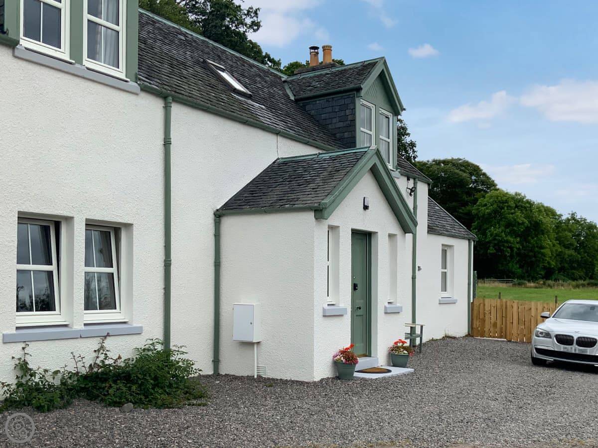Balmore Farmhouse is in Scaniport. It's a good twenty minute drive south from the centre of Inverness. The house itself is detached, set back from the road a bit. You get a big garden, and it's fully enclosed which is good if you're bringing dogs or kids.