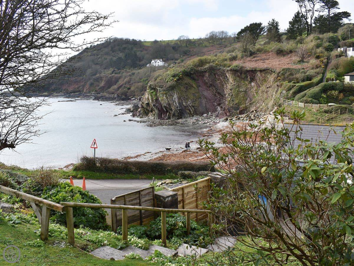 You're about a hundred yards from the beach at Talland Bay. It's got rock pools and is safe for swimming when the tide's out. There are two cafes on the bay. One does evening barbecues in summer, the other rents out kayaks.