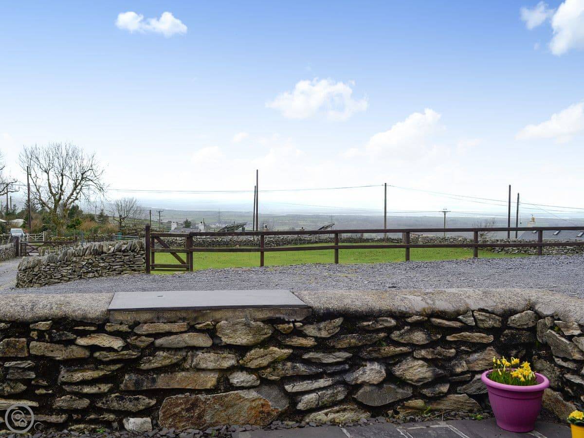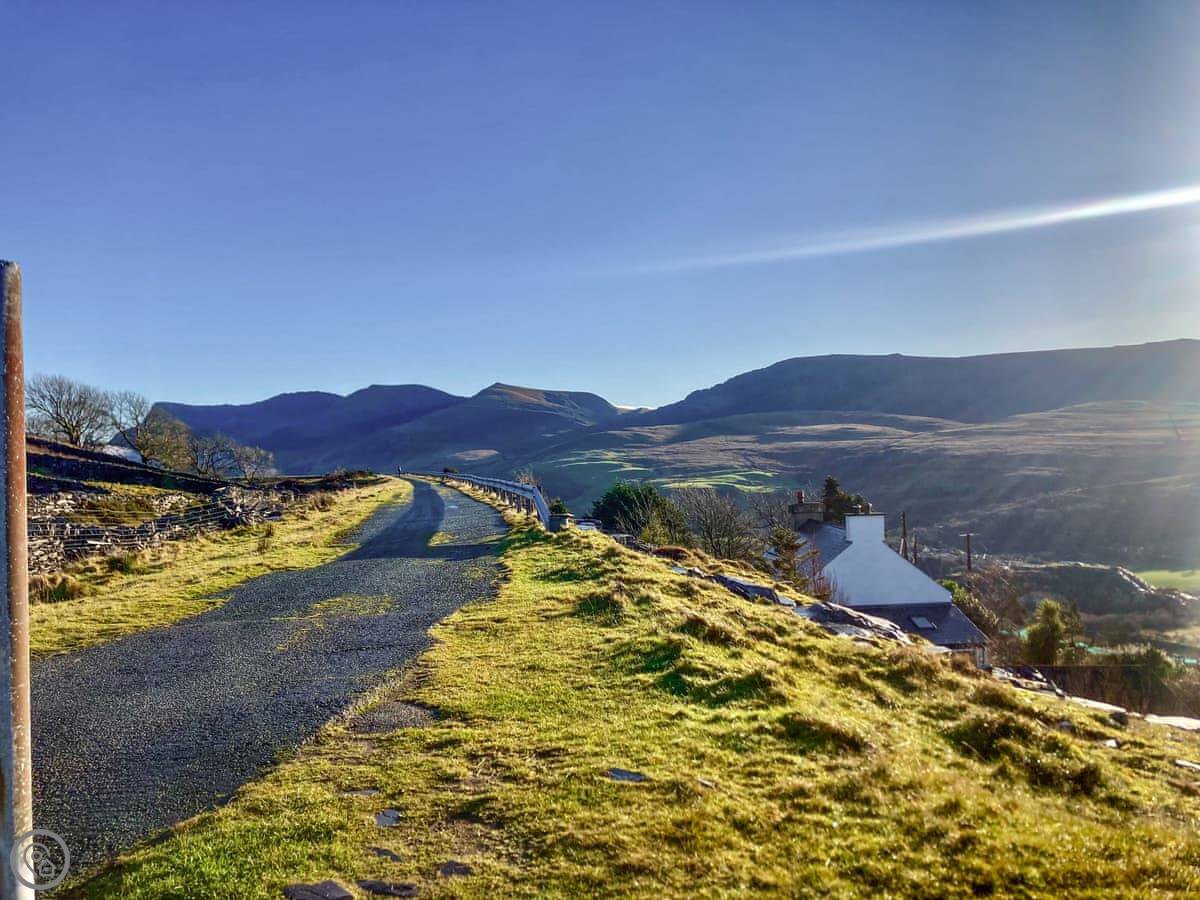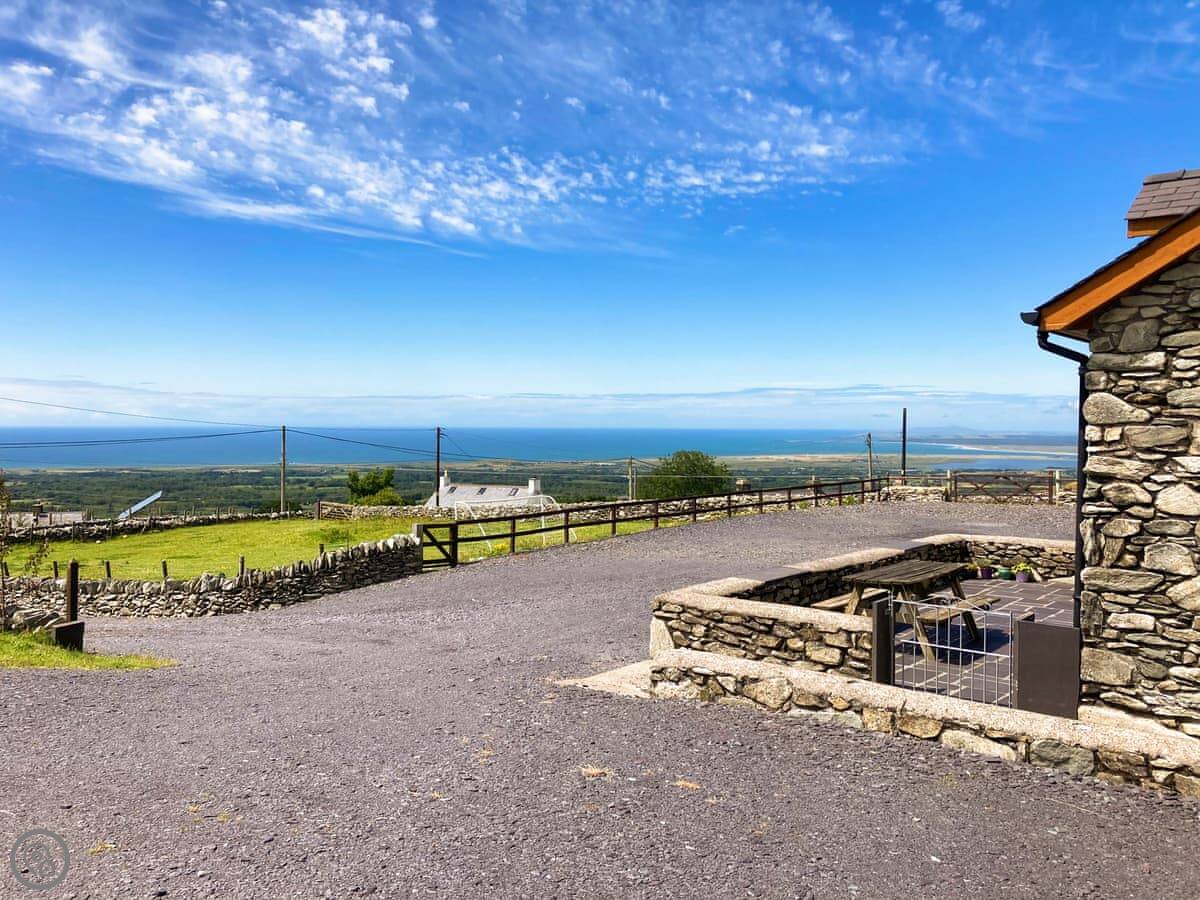 Beudy Bach is a stone cottage up on Cilgwyn mountain. It's detached. It looks out over fields towards the Llyn Peninsula and Anglesey. On a very clear day, you can see the Irish coast.