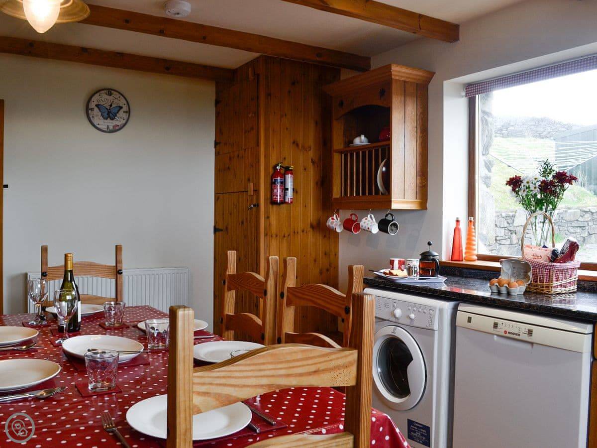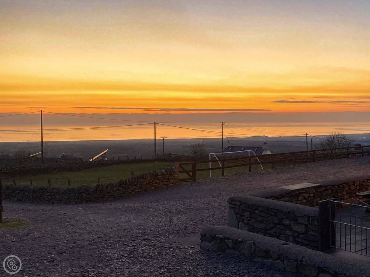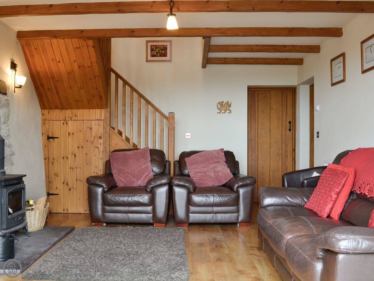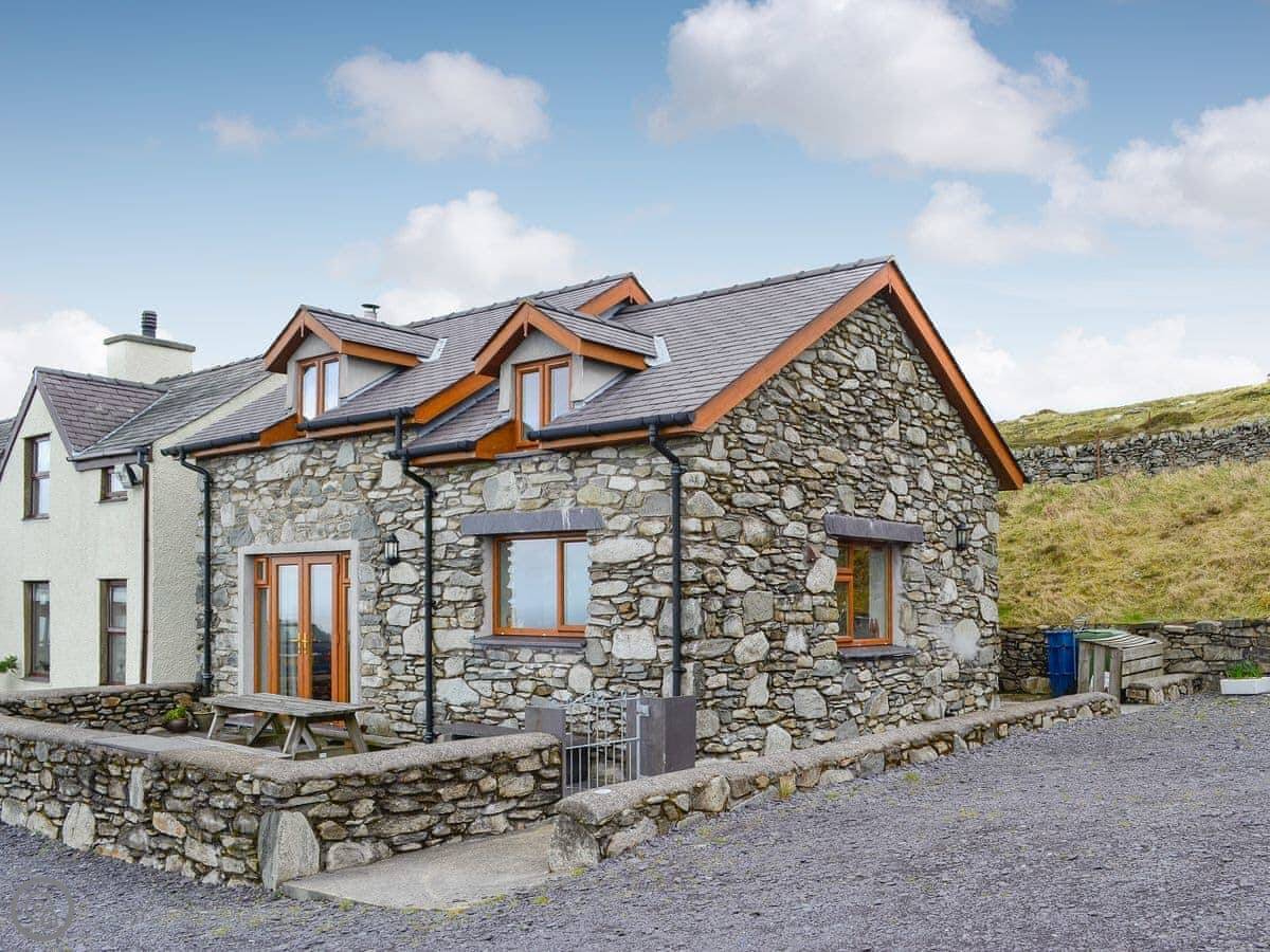 Beudy Bach is a stone cottage up on Cilgwyn mountain. It's detached. It looks out over fields towards the Llyn Peninsula and Anglesey. On a very clear day, you can see the Irish coast.