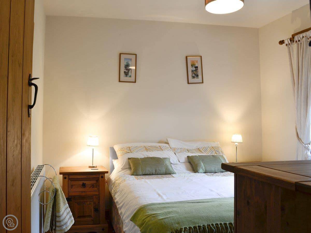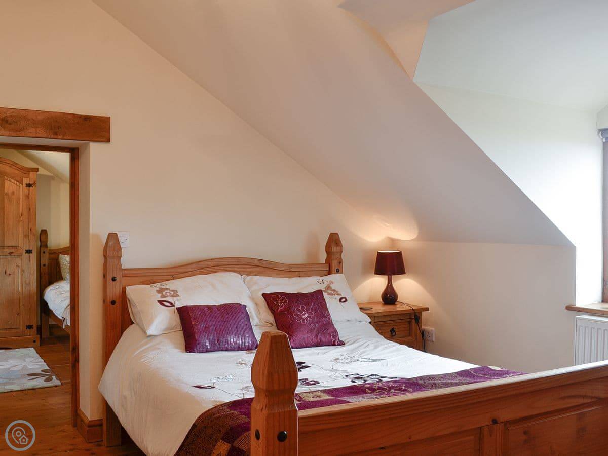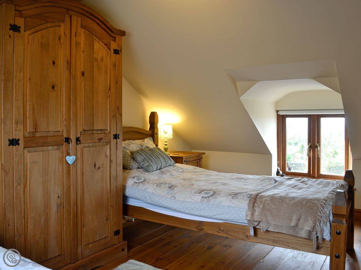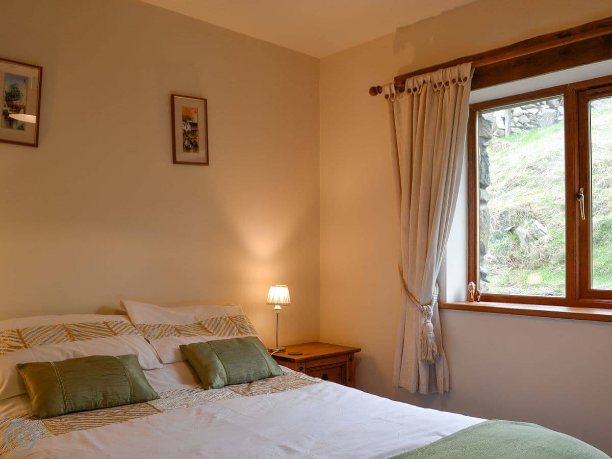 The cottage sleeps six. There are three bedrooms and one bathroom. It's a 4 Star place, so it's comfortable and well-kept. The renovation kept the old stonework, which is nice. You can bring one dog.