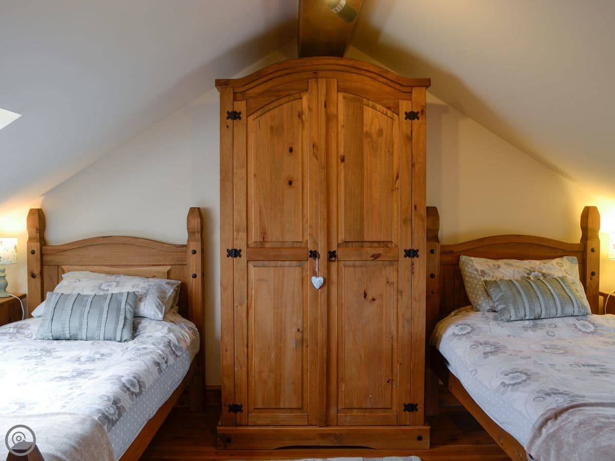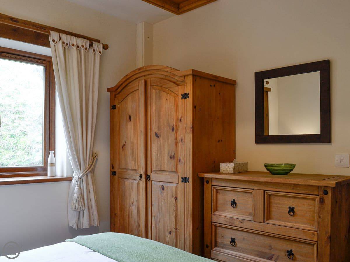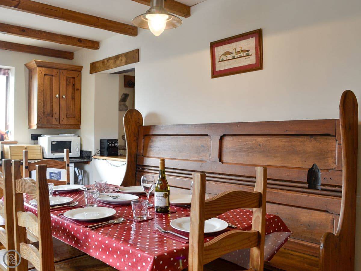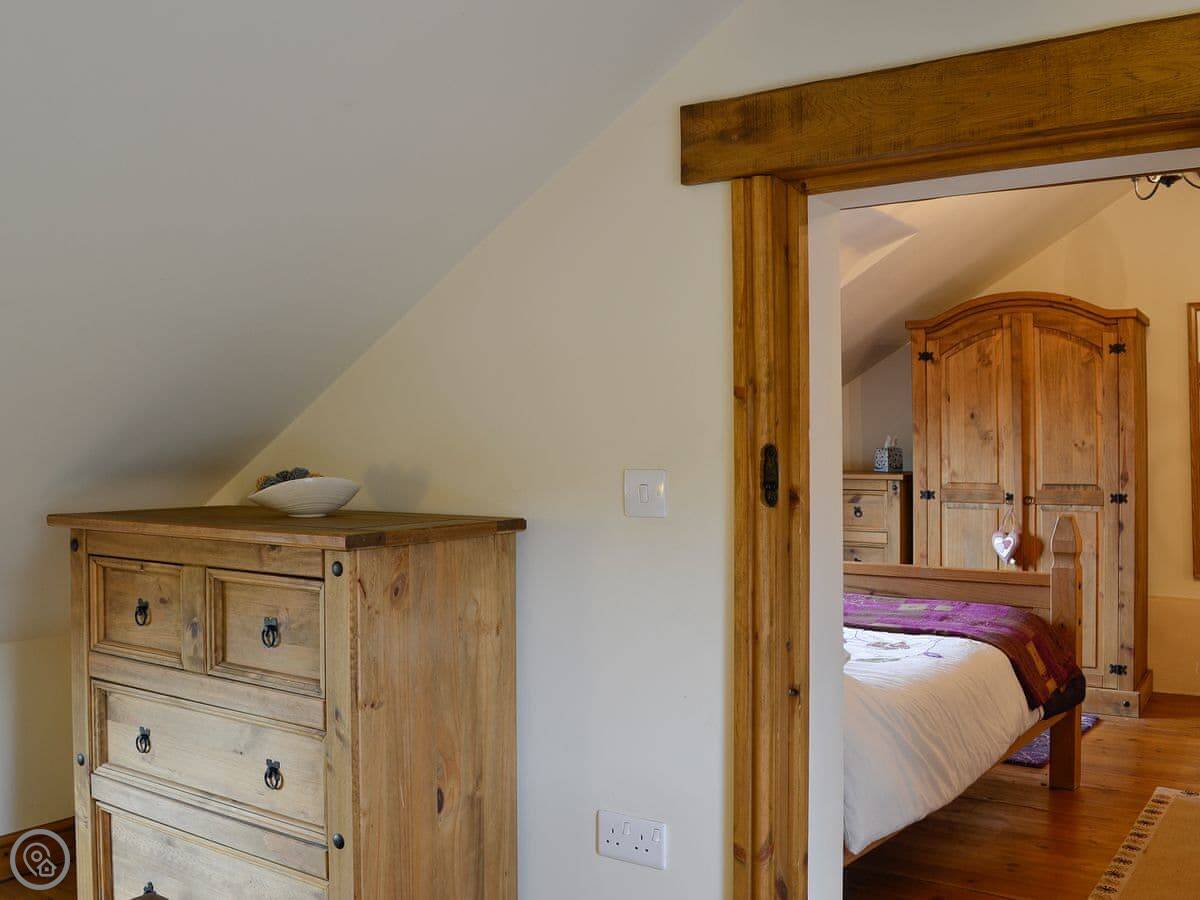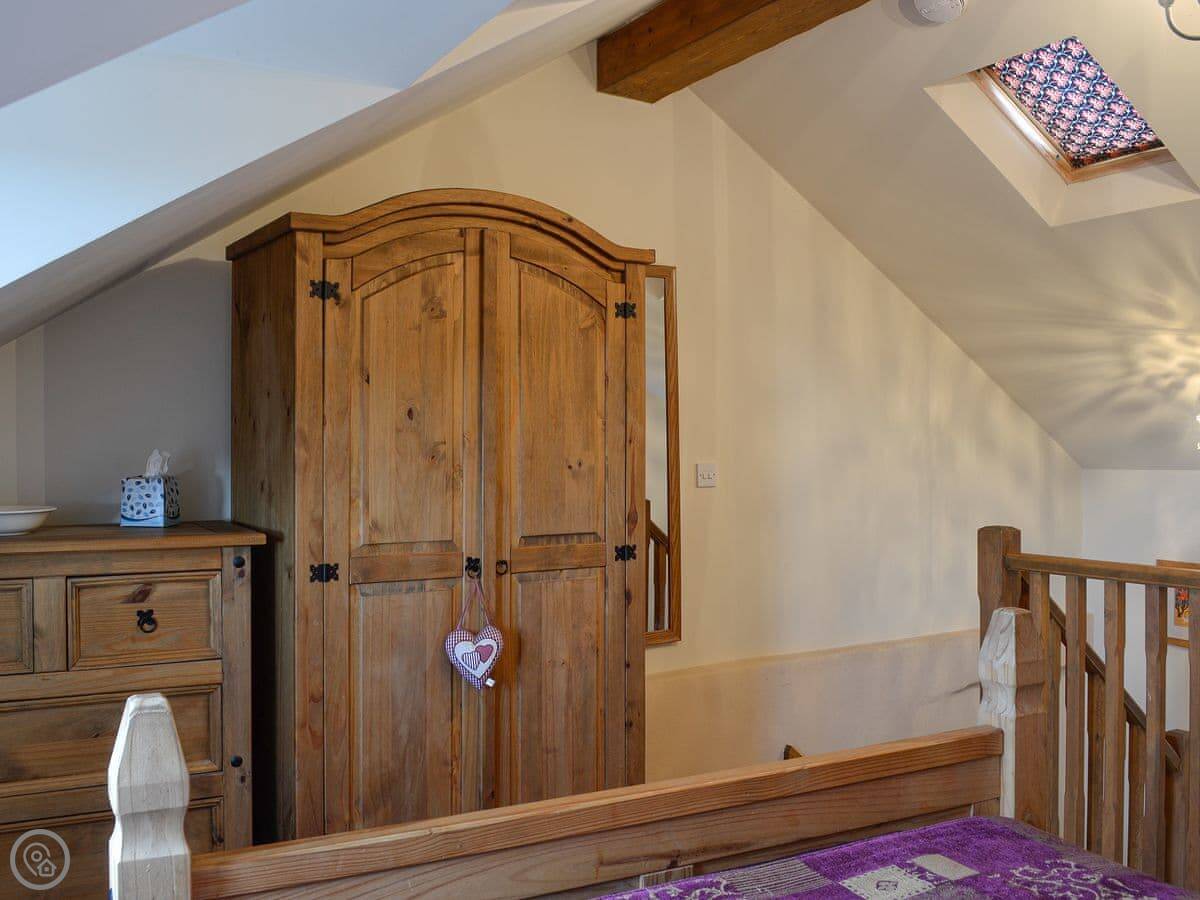 The cottage sleeps six. There are three bedrooms and one bathroom. It's a 4 Star place, so it's comfortable and well-kept. The renovation kept the old stonework, which is nice. You can bring one dog.