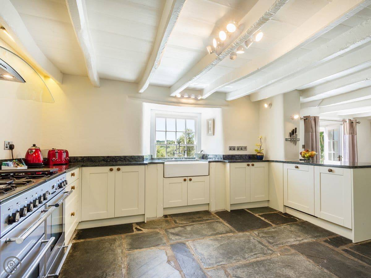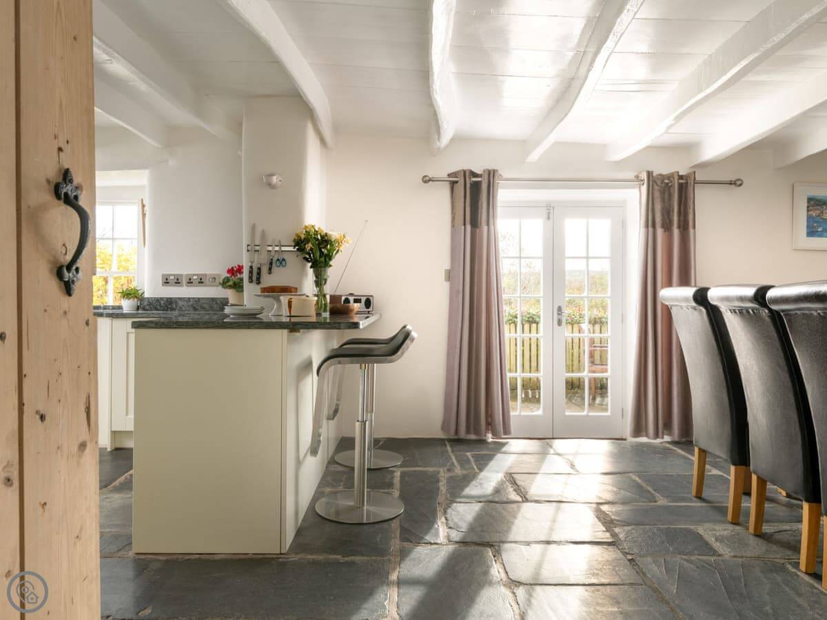 The Old Farmhouse offers a large kitchen, living and dining area with exposed beams and vaulted ceilings. It has underfloor heated flagstones throughout the ground floor, complete with a wood burner. Outside there is a large garden and patio with a private hot tub and covered dining area, gas barbecue. The Farmhouse sleeps 8 across 4 bedrooms with 3 bathrooms, downstairs toilet and a utility room. The properties is a fabulous location for family holidays or two families holidaying together.