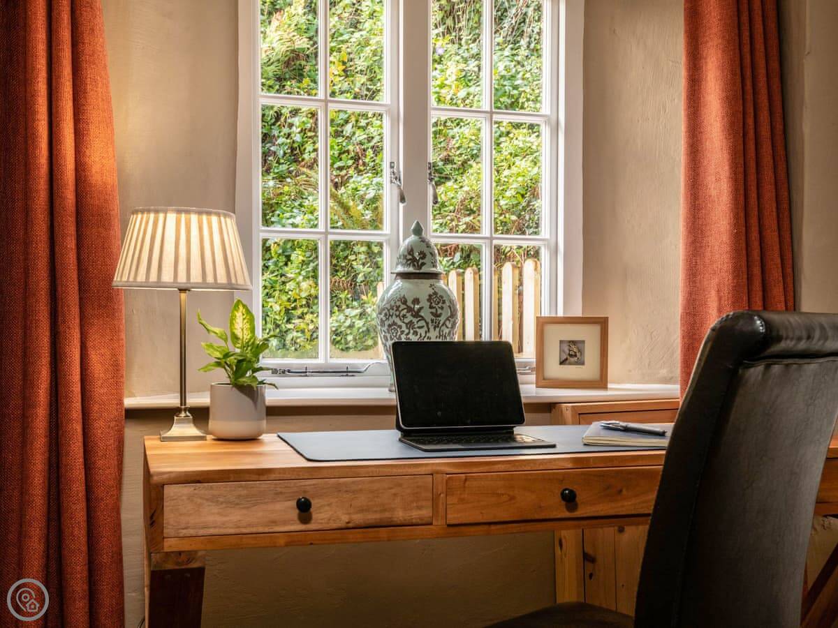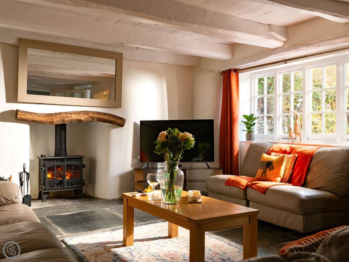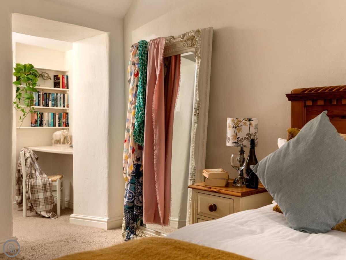 Honey Pot is a south facing cottage enjoying garden and distant views. This cosy cottage has a wood burner. The bedroom has a spectacular chandelier enclosed within a giant lampshade adding to the romantic honeymoon getaway feel of this lovely cottage.