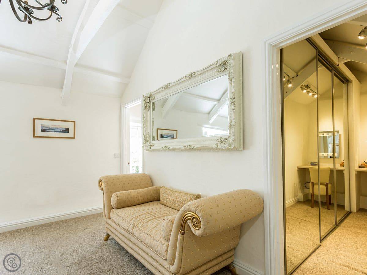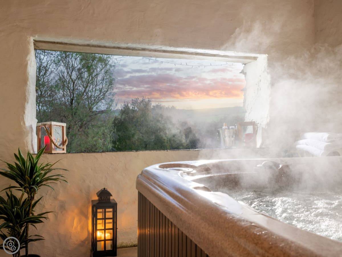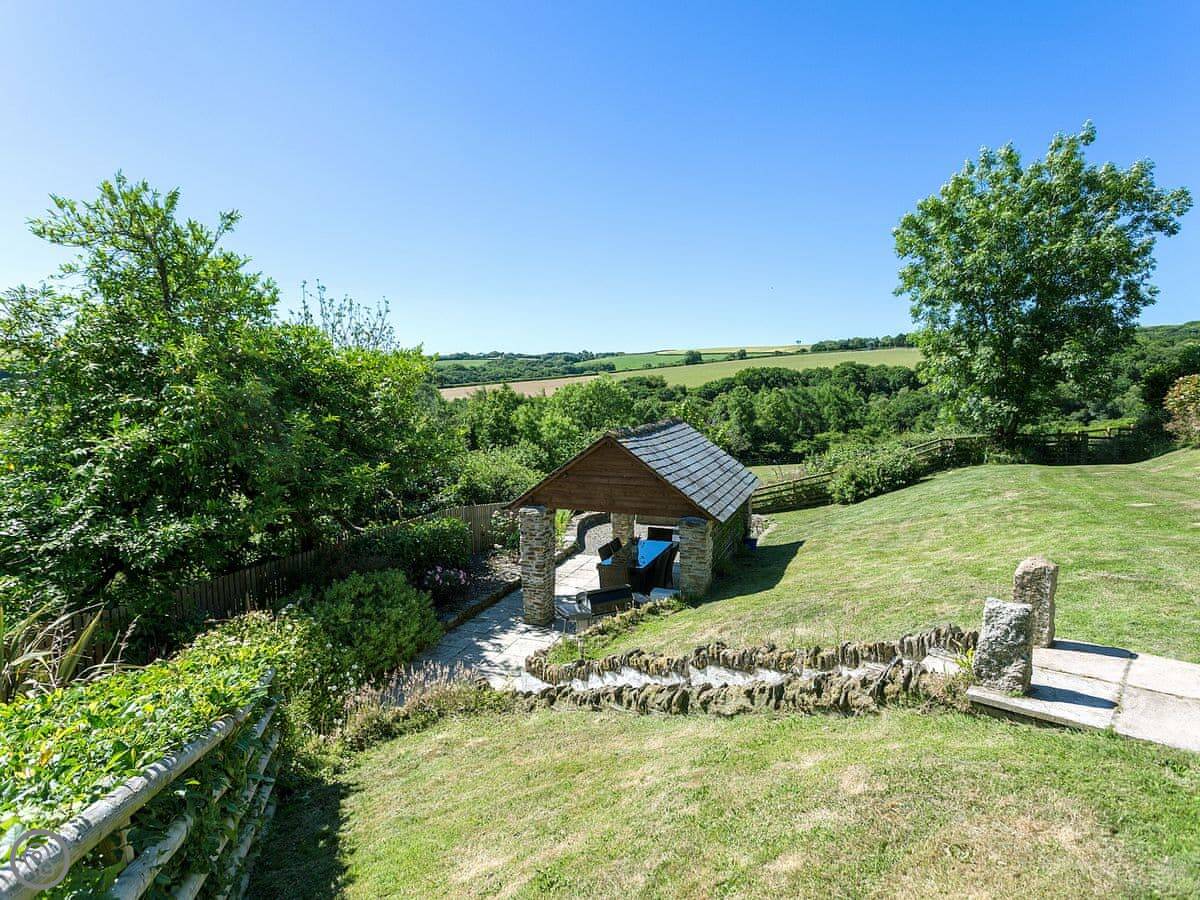 Honey Pot is a south facing cottage enjoying garden and distant views. This cosy cottage has a wood burner. The bedroom has a spectacular chandelier enclosed within a giant lampshade adding to the romantic honeymoon getaway feel of this lovely cottage.