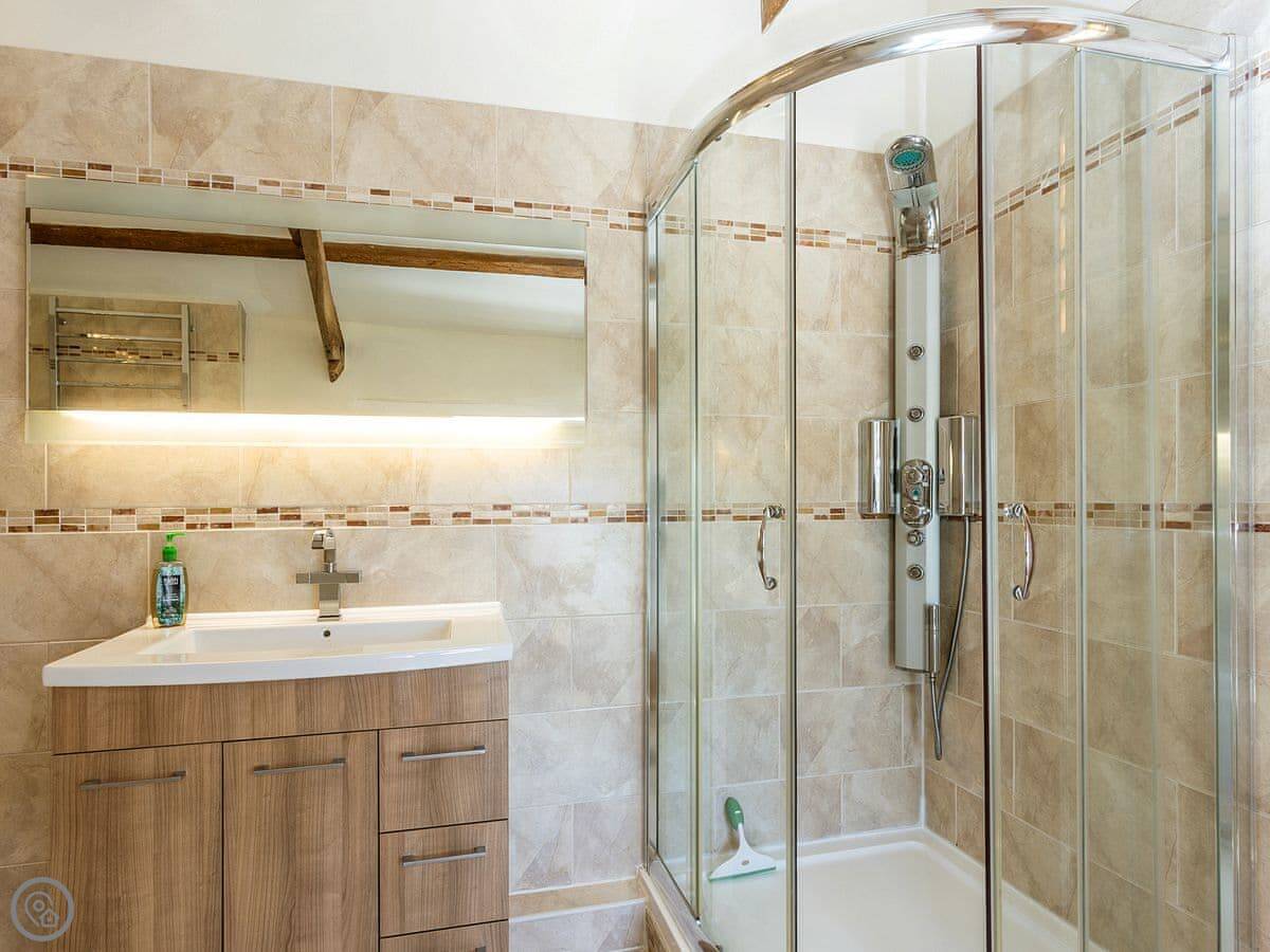 Spice Barn with its ’upside down’ configuration, enjoys superb views up to the pavilion. The downstairs bedroom has an en-suite bathroom with a walk-in shower and jacuzzi bath, perfect for relaxing after a long day sightseeing! Outside there is a small walled garden area with a patio and barbecue and a 50m to the Pavilion field, which is a dog secure field.