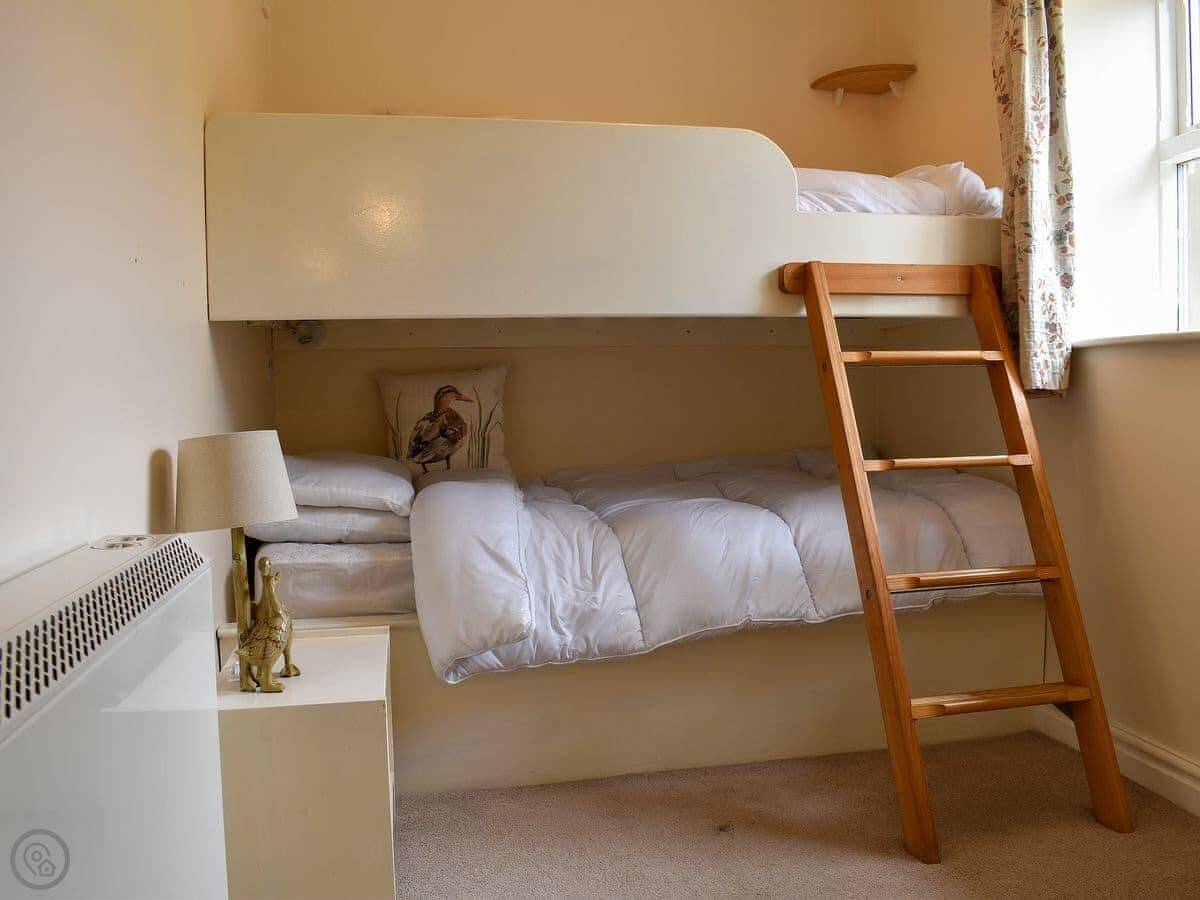 It sleeps four in two bedrooms. One has a king-size bed, the other has adult-size bunk beds. There's one bathroom with a shower. It's a 3 Star place, so it's clean and comfortable but you won't find luxurious finishes. It's all on ground level, but there are two small internal steps between the living area and the bedrooms you need to be aware of.