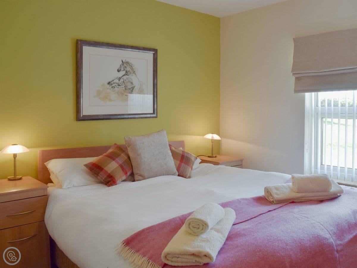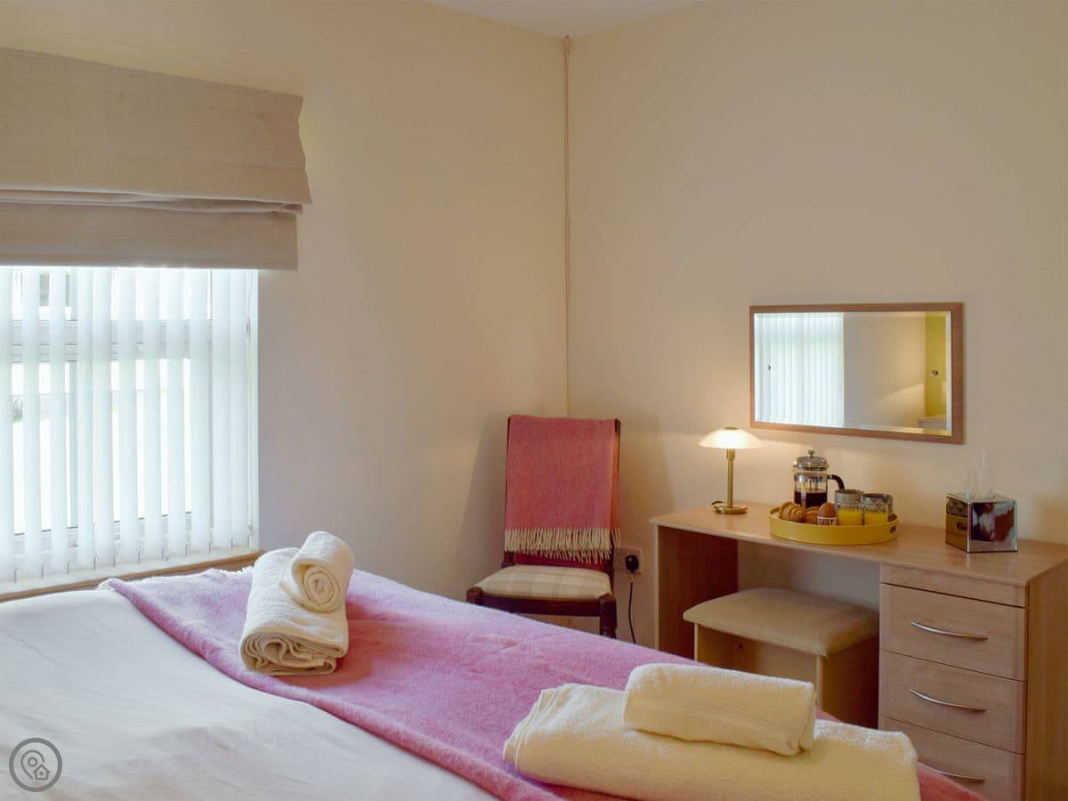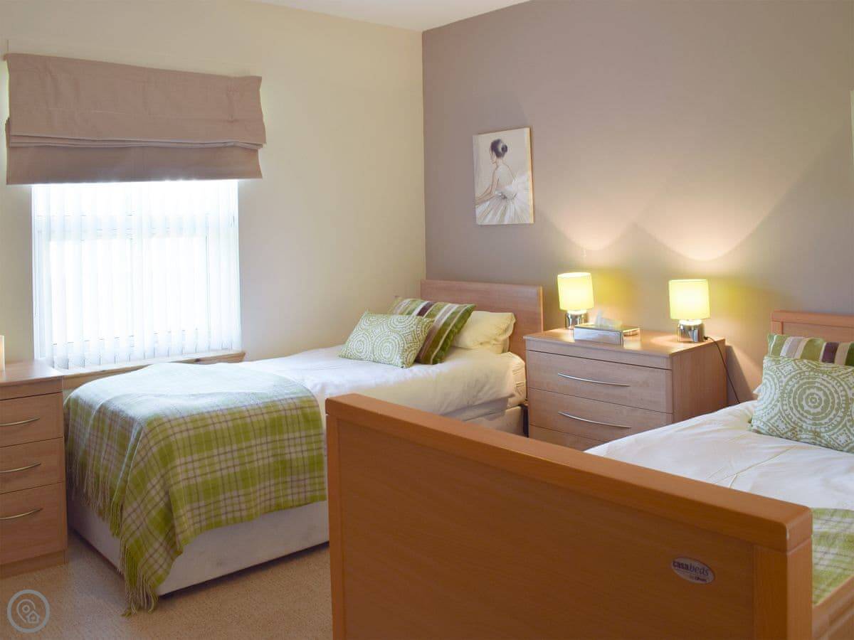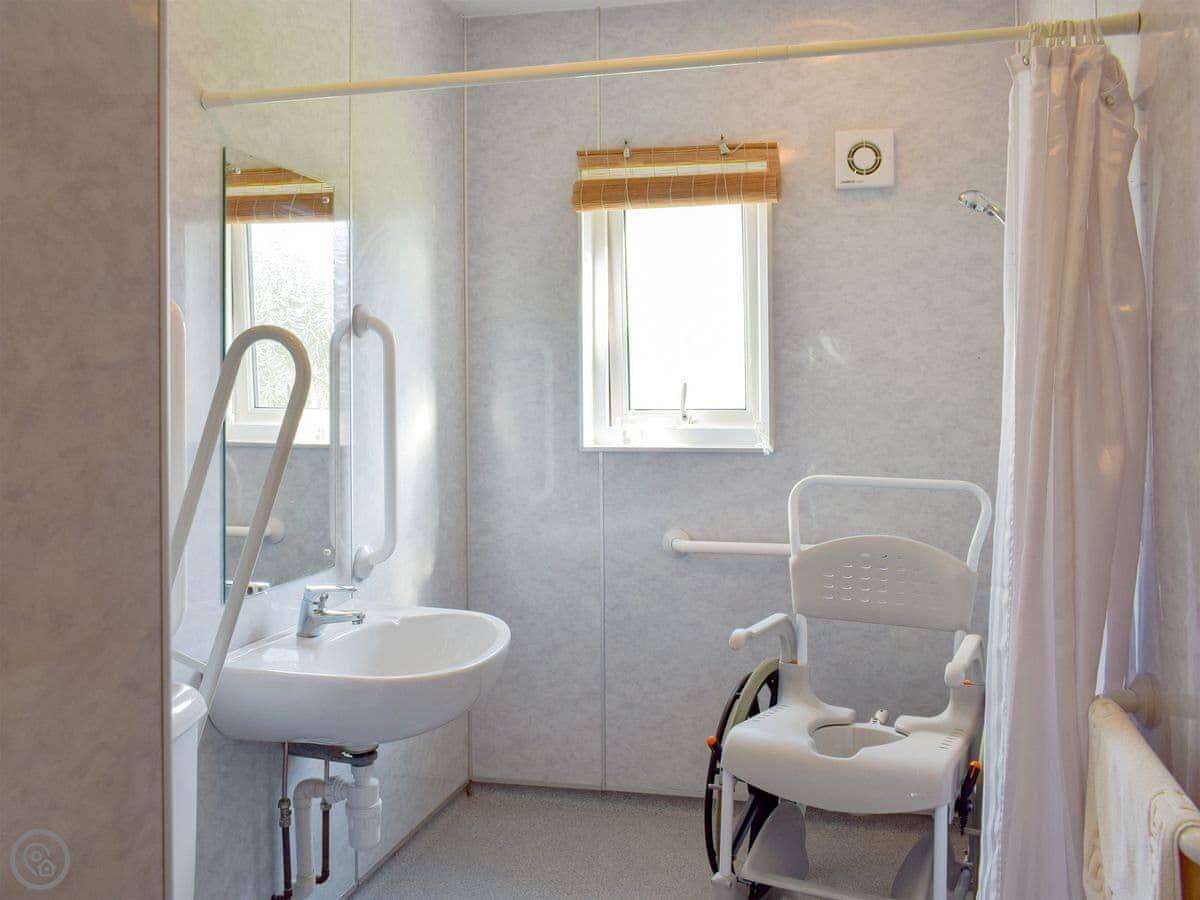 It sleeps six people in three bedrooms. There are two bathrooms. One is a wet room on the ground floor. It has a 4 Star rating. It's set up for wheelchair access, with grab rails and an electric bed if you need one. The kitchen worktops are low.