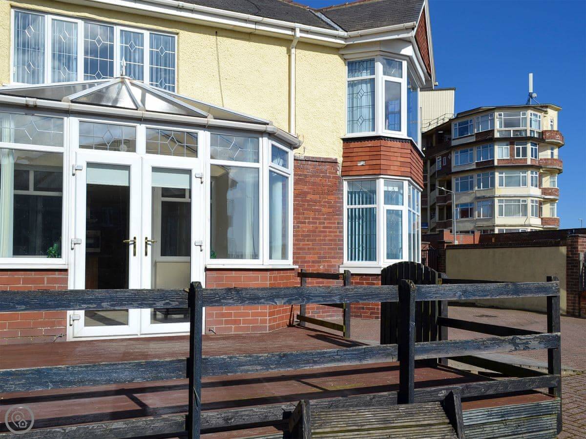 It sleeps four. Two bedrooms, one bathroom. It’s got a 4 Star rating, so it’s comfortable and everything works. The entrance is through a ramp into the conservatory, which is handy. The courtyard garden out the back is enclosed.