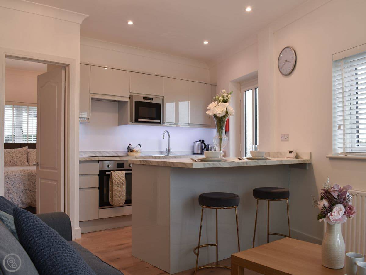 It’s for two people. One bedroom, one bathroom. It's got a 4 Star rating. The bed is a king-size, but it splits into two singles if you need that.
