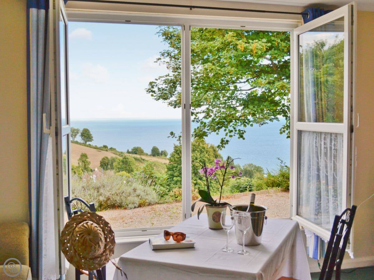 You can bring up to two dogs. The garden is shared between the properties, but it's an acre so there's room. The view from there is out to sea.