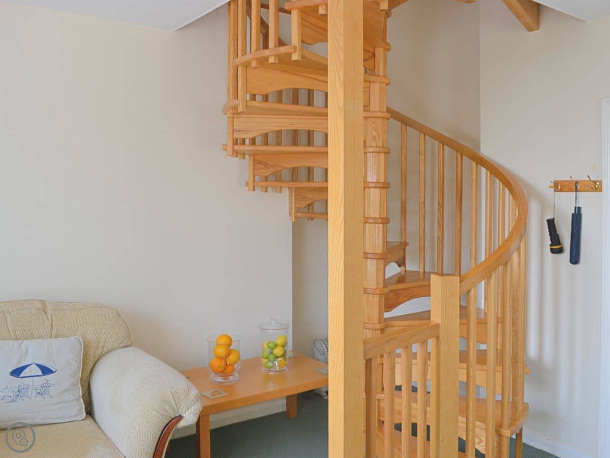 The stairs inside are steep. It's that kind of place. There's a cot if you need one, and bedding and towels are provided.