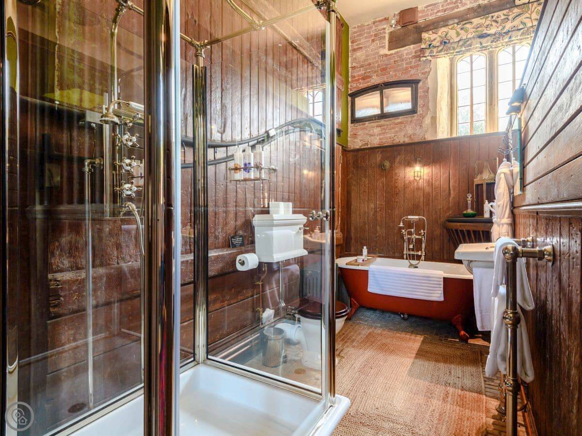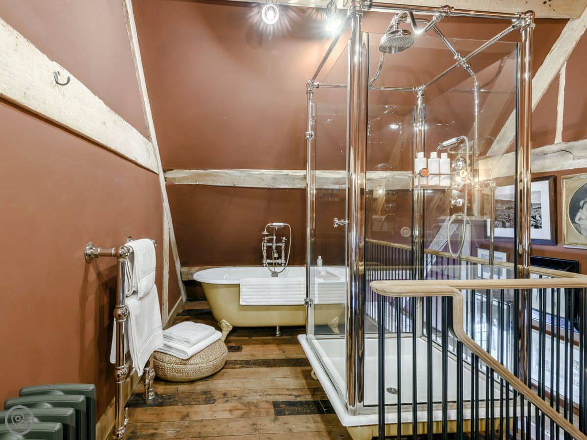 Eight bedrooms, all with king size beds and their own bathrooms. Each bathroom has both a bath and a walk-in shower. The beds are made up with Egyptian cotton linen. There are robes in every room.