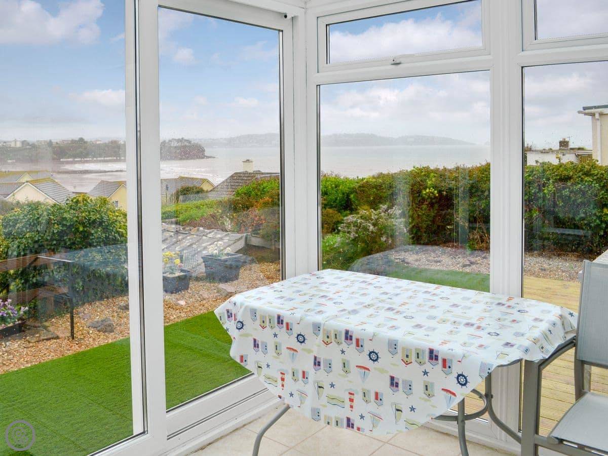 The living room is big, with an open fire. There's a conservatory off it, which is just more space to sit and look at the bay. It's got a 4 Star rating.