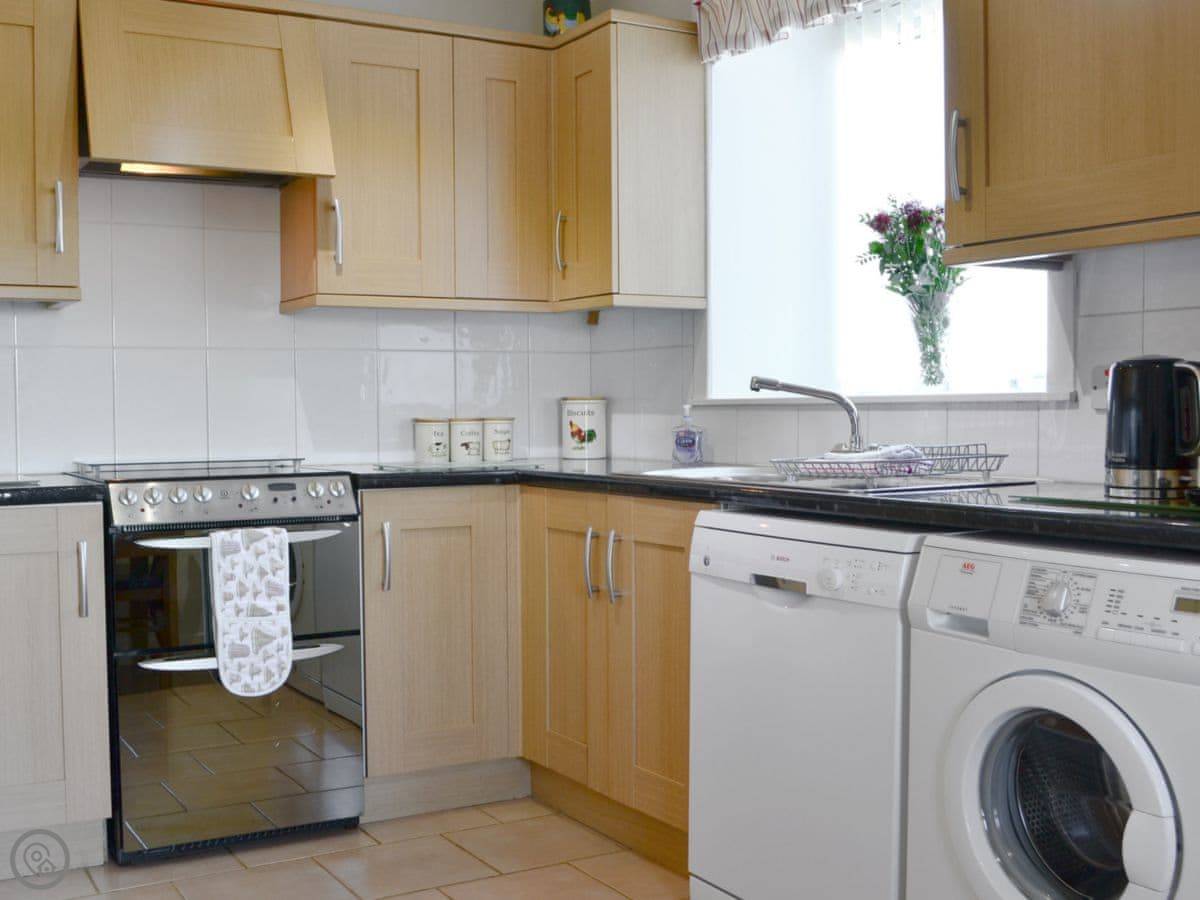It sleeps five in three bedrooms. There’s one bathroom with a walk in shower. It’s got a 4 Star rating, which means it’s comfortable and everything works. You’ve got oil central heating.