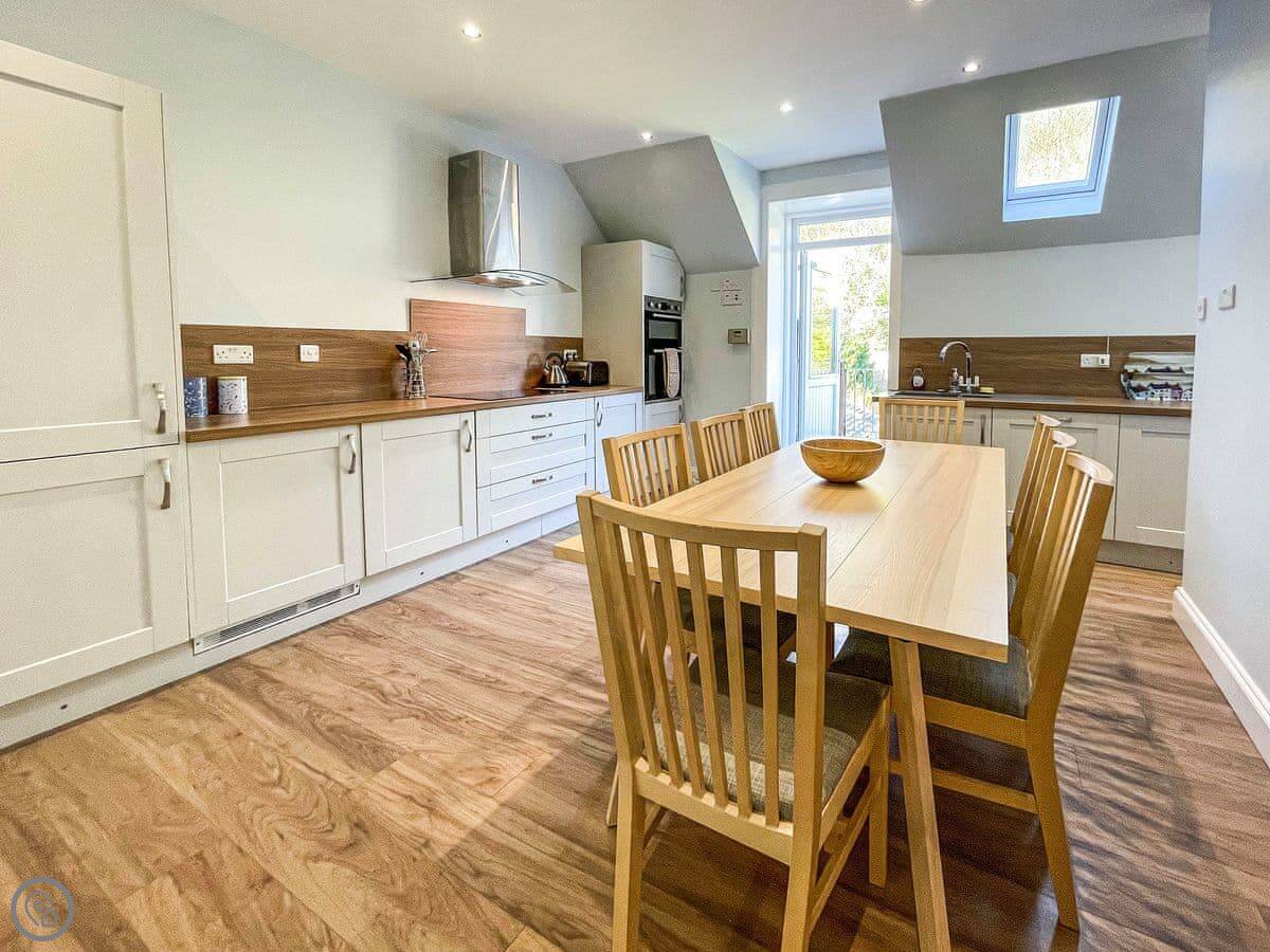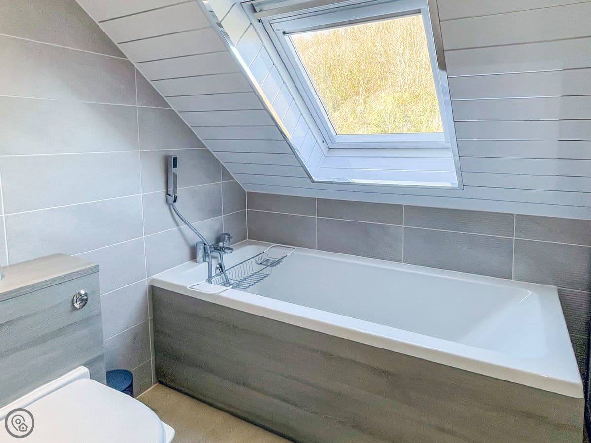 For facilities, it’s got most things: WiFi, a woodburning stove, dishwasher, washing machine, and bedding and towels are included. There’s a patio garden out the back. You can bring up to two dogs.