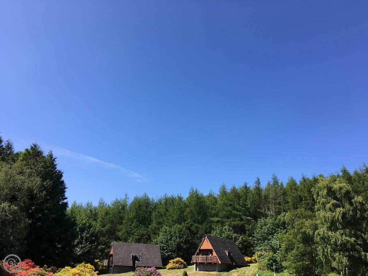 Heather Lodge is in Rosemarkie, up in the Highlands. It's a detached wooden lodge, built on a slope in a bit of woodland. You get your own private patio out front. The main view is out over the sea.