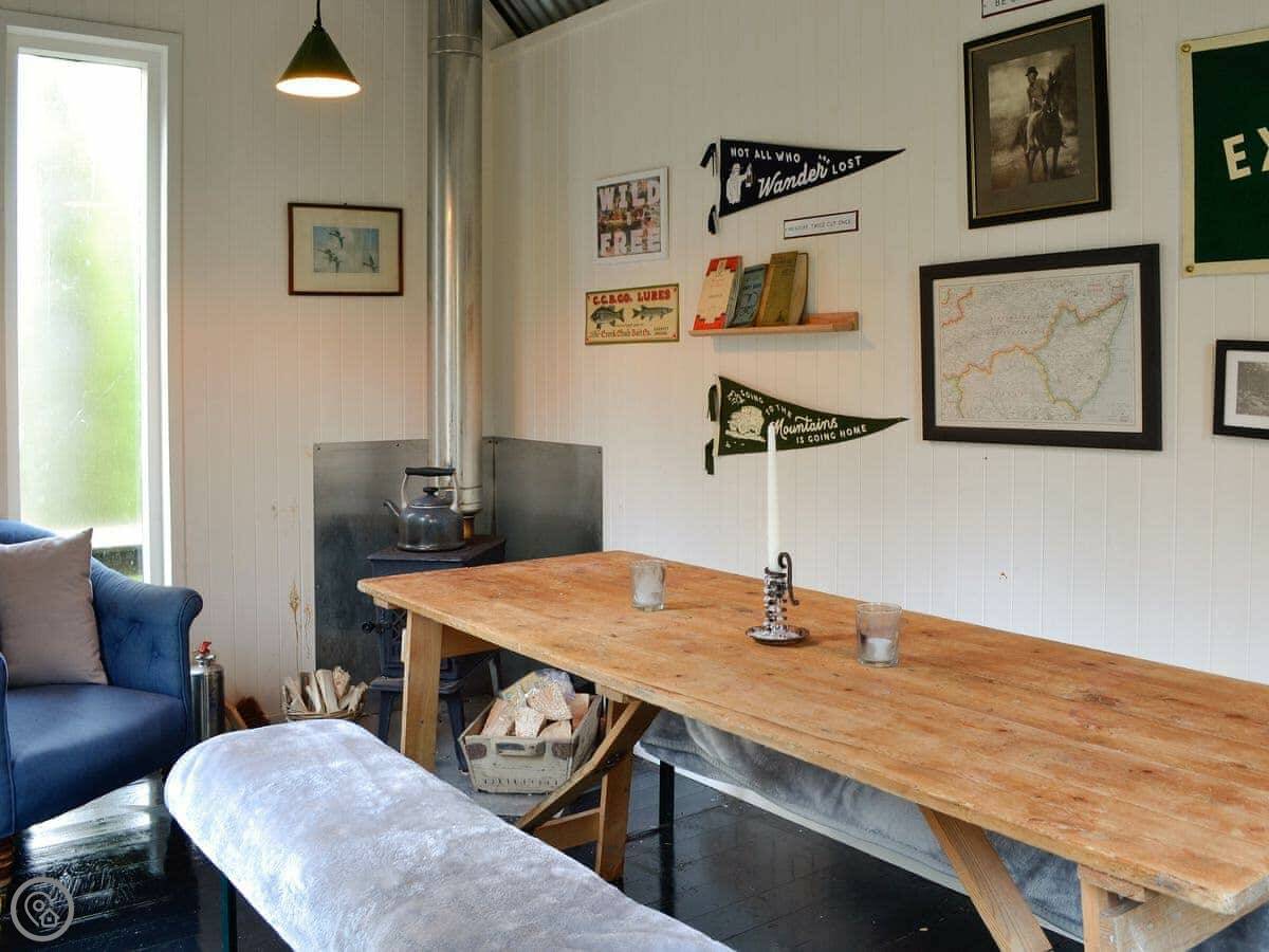 North Lodge accommodates up to six guests and is situated on the banks of the River Dye. Why not venture along the private footpath that winds its way alongside the river and the private cabin, where you will find the River Cabin and your own outdoor haven? It has everything you need for a day or evening of outdoor mucking around, wild swimming and cooking, including a wood burner and a Big Green Egg . It also has its own Swedish wood-fired hot tub, where you can relax and unwind in floodlit woodland.