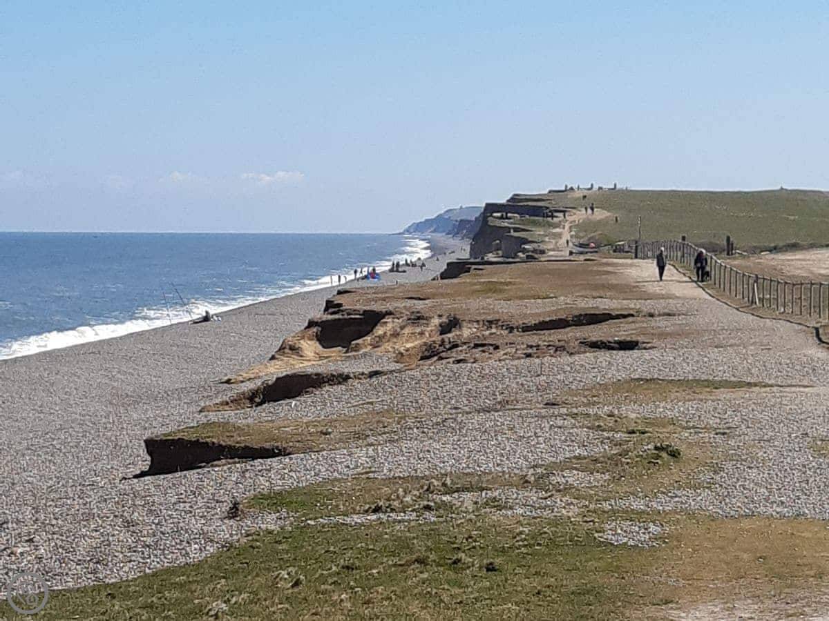 The nearest proper beach is at Weybourne village, about a mile and a half away. It's shingle. The village has a pub and a deli that does coffee and basics.