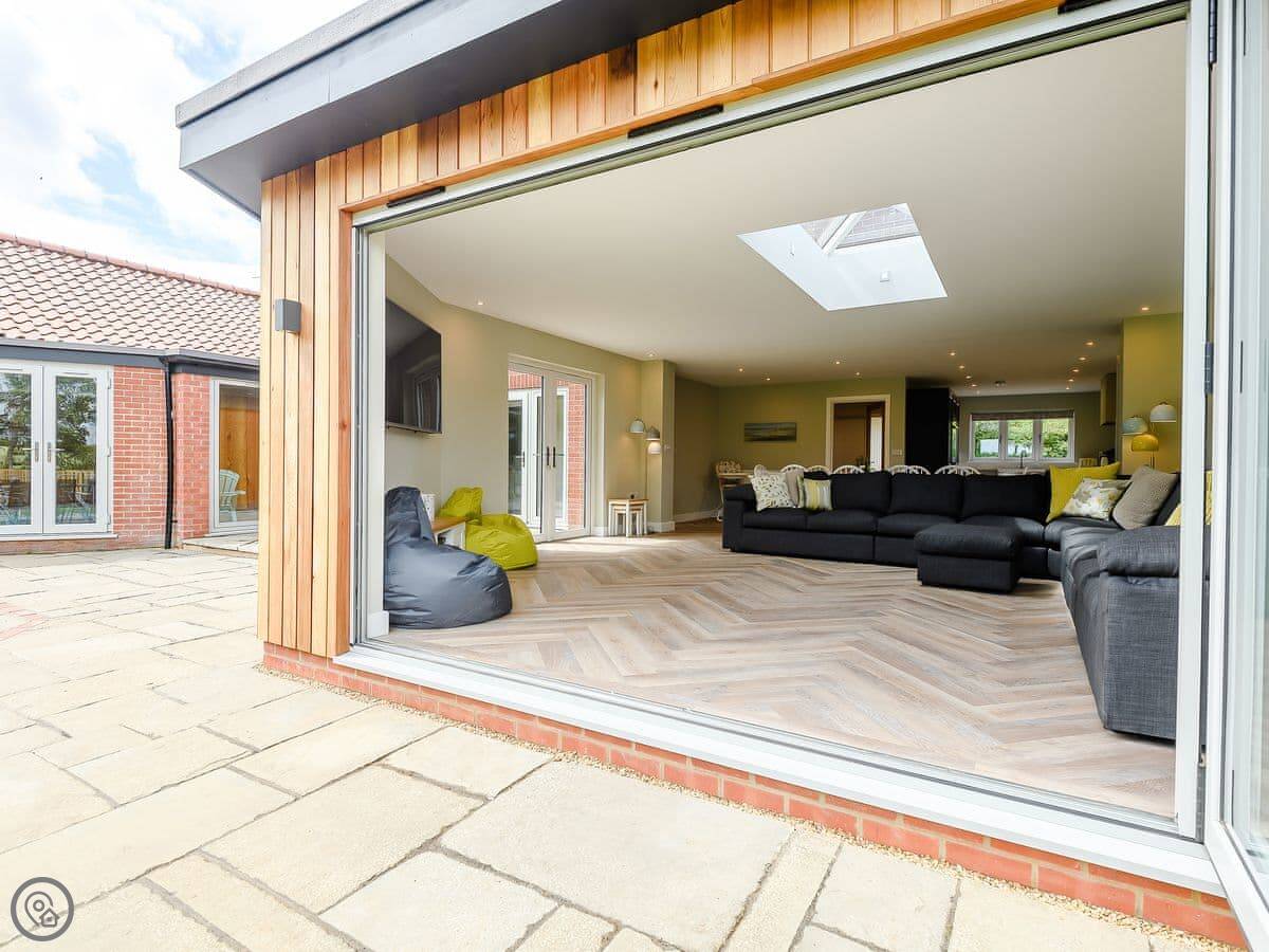 Cherry Ridge is in Great Bircham, on the edge of the village. It's a big detached house that sleeps ten. There are five bedrooms and five bathrooms, so it's good for a group where everyone wants their own space.