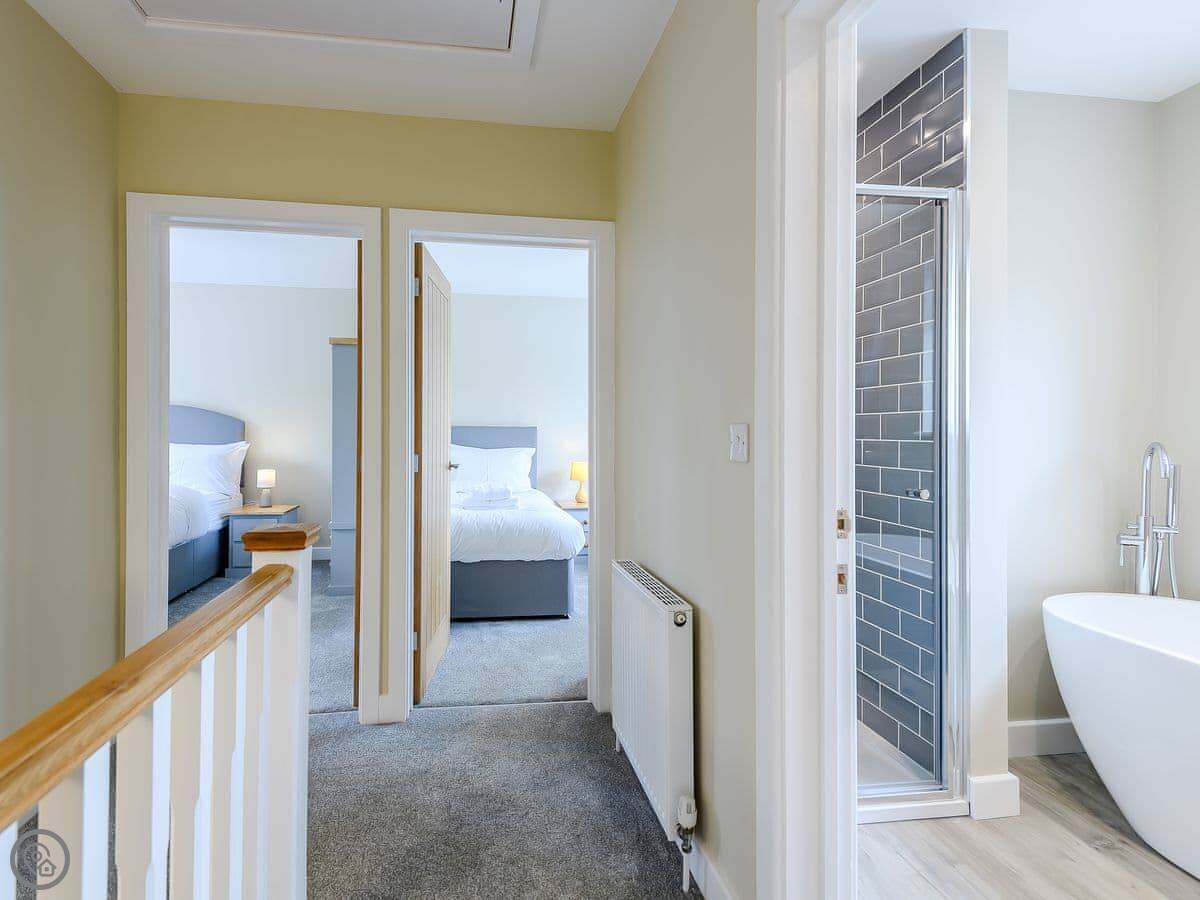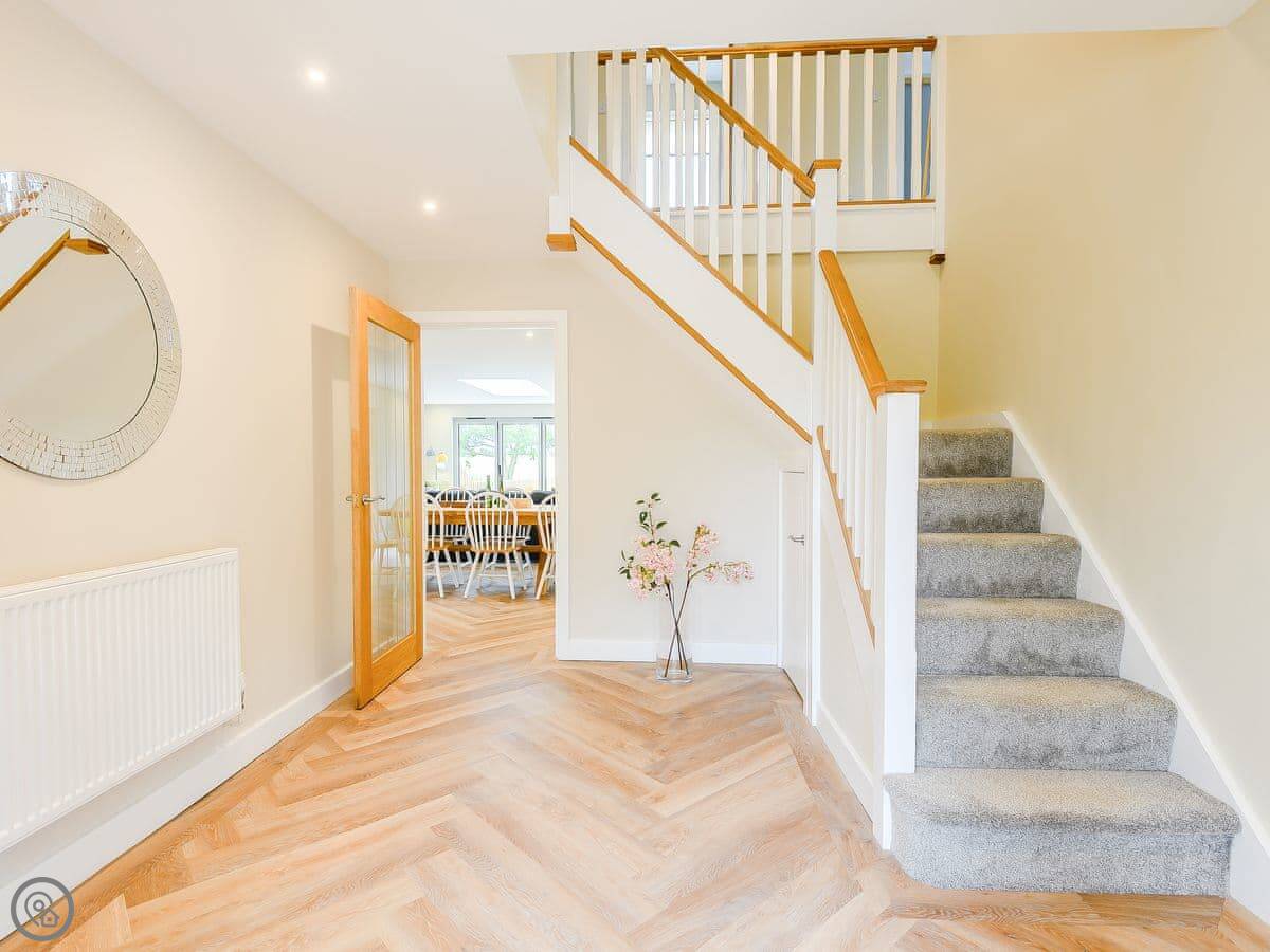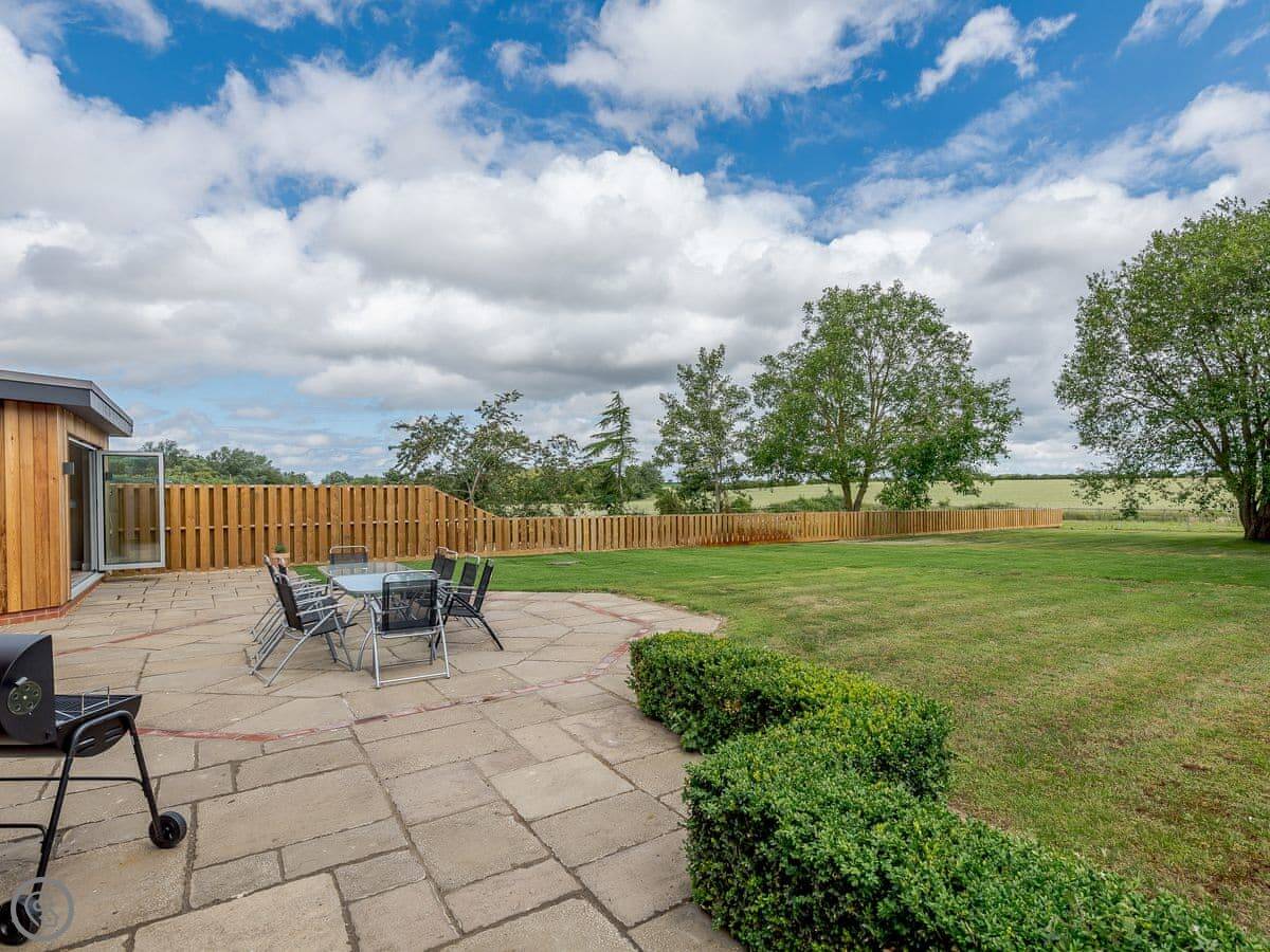 A few things to note plainly: some of the stairs are open tread or a bit narrow. The garden is landscaped and looks out over fields.