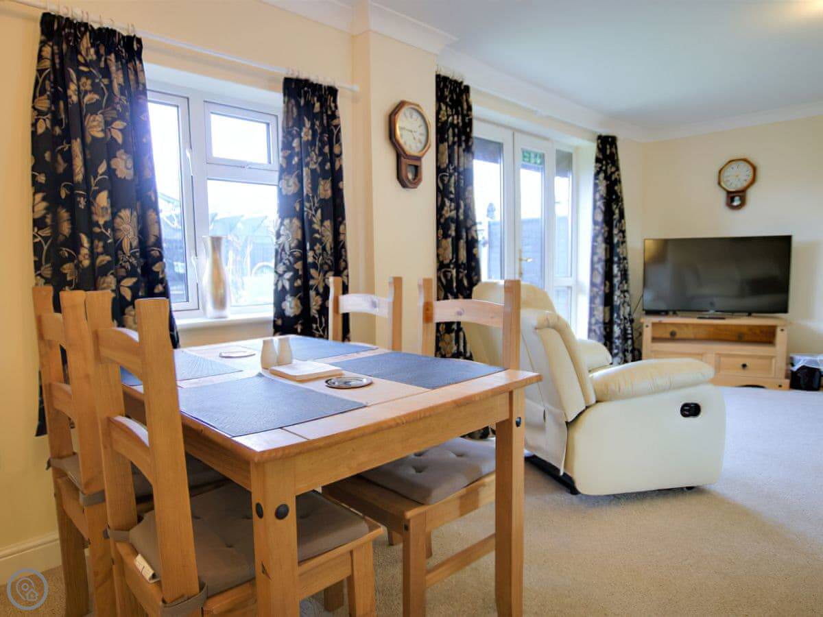 "Irenic Lodge and Irenic Lodge 2 have undergone exquisite refurbishments to achieve an exceptional standard of comfort and style. These semi-detached bungalows offer an inviting retreat for both couples and families looking to explore the captivating region of Hampshire. The open plan living and dining area, adorned with reclining leather sofas, is a spacious, well-lit haven, complete with French doors that open onto an enclosed patio garden featuring a charming pergola and garden furniture – a delightful setting for alfresco dining.