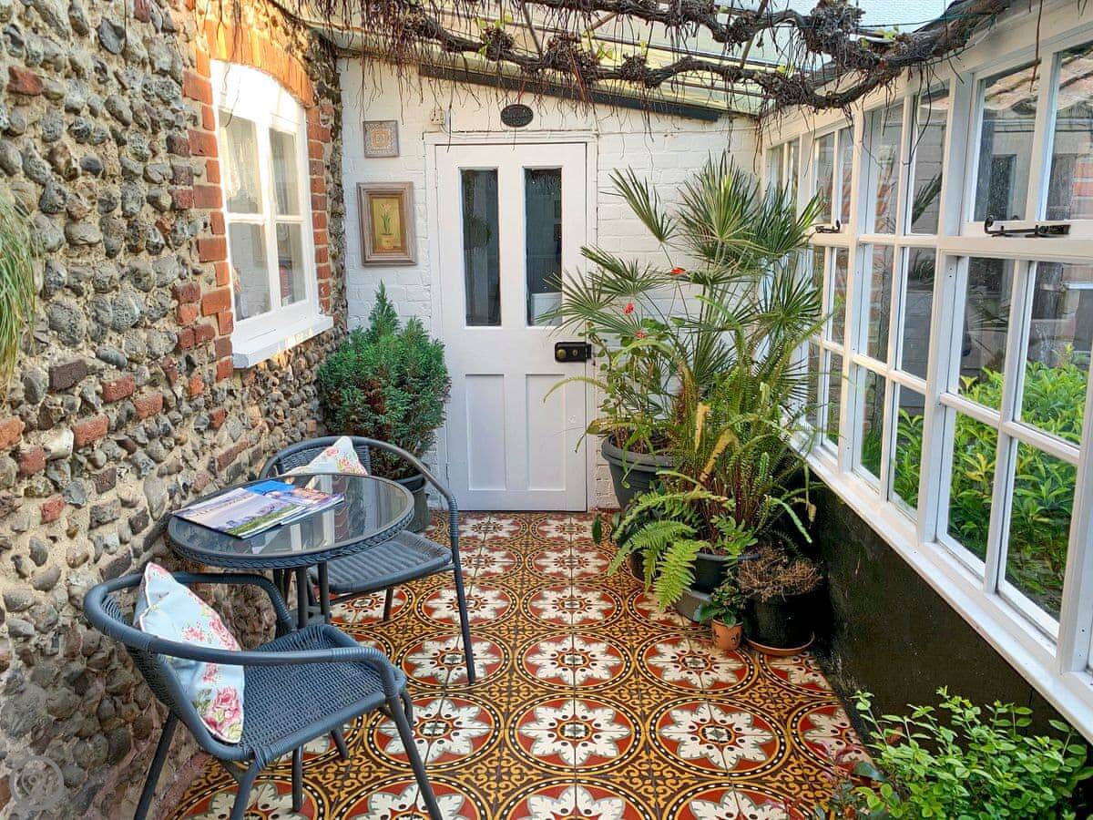 The coast is about six or seven miles away. Wells-next-the-Sea is popular. It's got the quay, a big sandy beach with beach huts, and places to eat. You can drive east to Blakeney or Sheringham, or west to other villages along the coast.