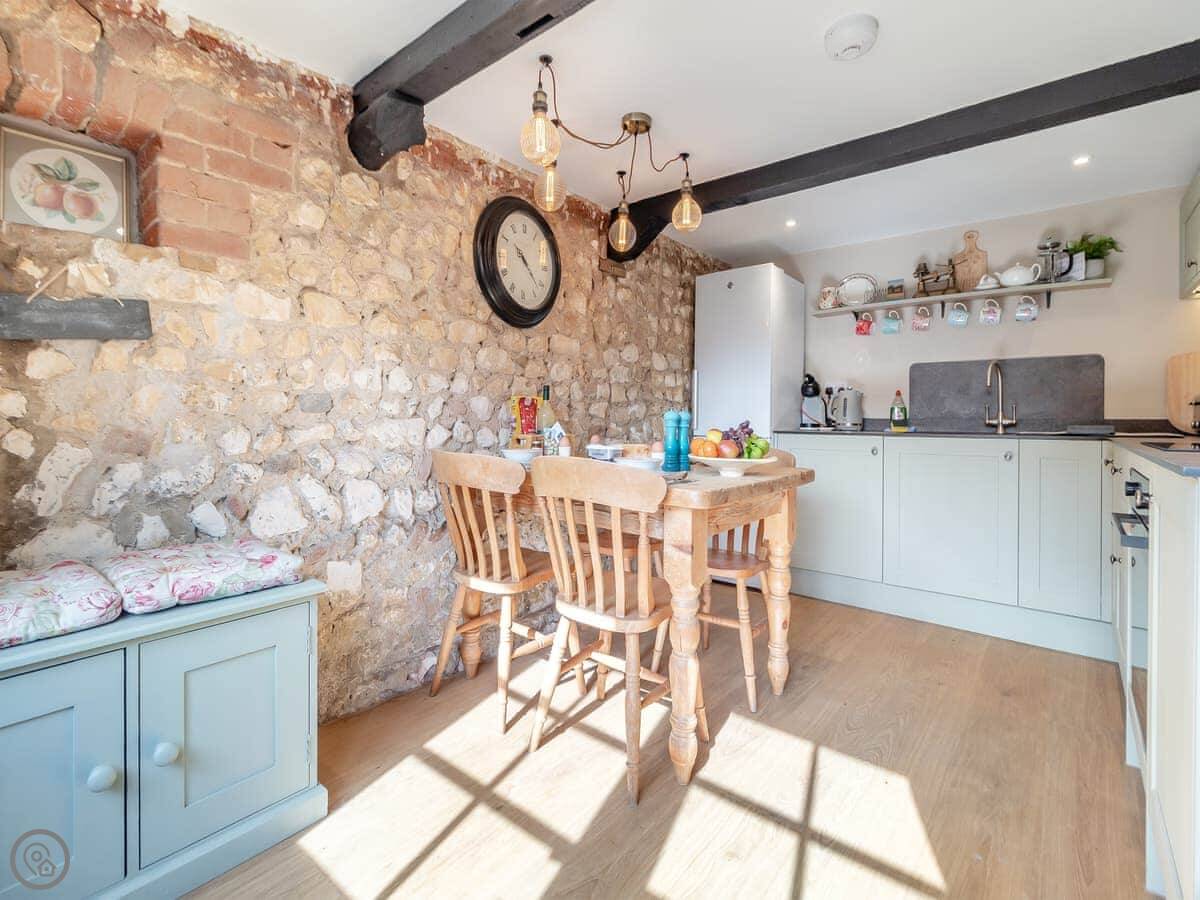 Rose Cottage is in Great Snoring. It's a 17th century cottage, but it's been done up inside. It sleeps four, in two bedrooms. There's one bathroom. It's got a 4 Star rating.