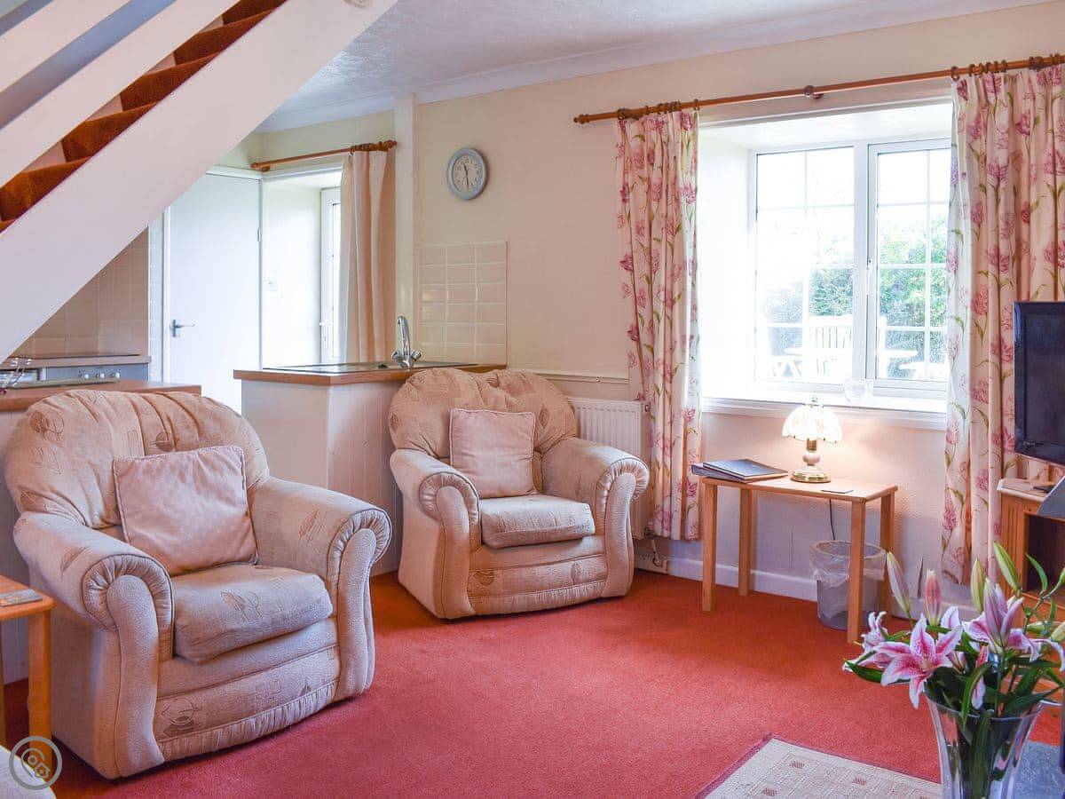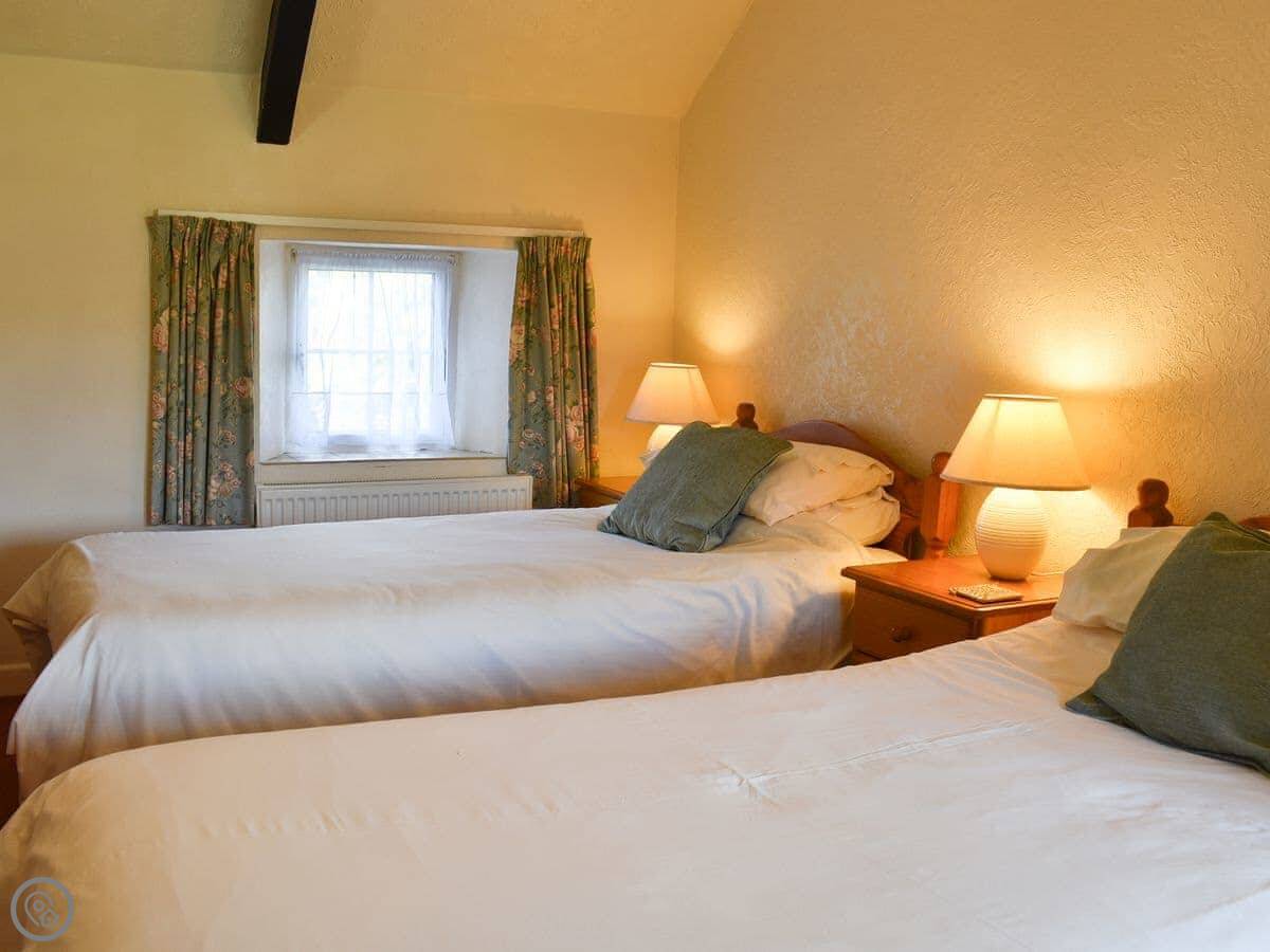 It sleeps four. Two bedrooms, one bathroom. It's got a 3 Star rating, so it's comfortable and clean. The place is open plan downstairs, which works well for a small group.