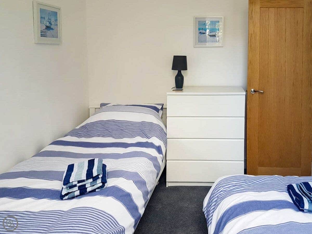 You're about a quarter of a mile from the beach at Ryde. The promenade is a few minutes' walk. There's tennis, a bowling alley, a swimming pool, and a little funfair along there. The view from the beach looks out over the Solent to Portsmouth. You can see the Spinnaker Tower and watch the ships go by.