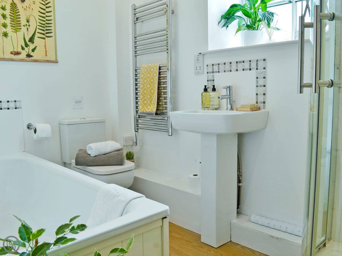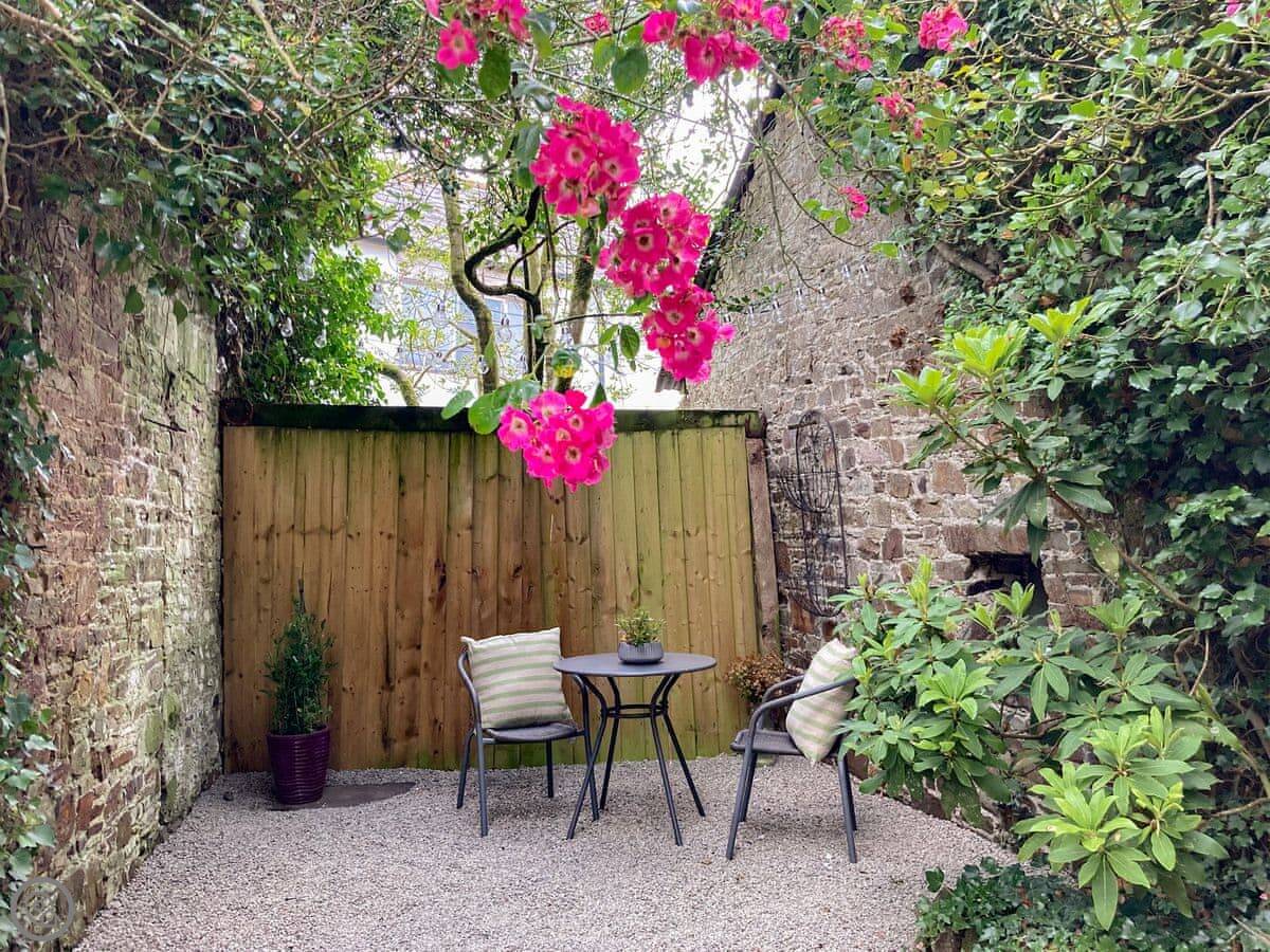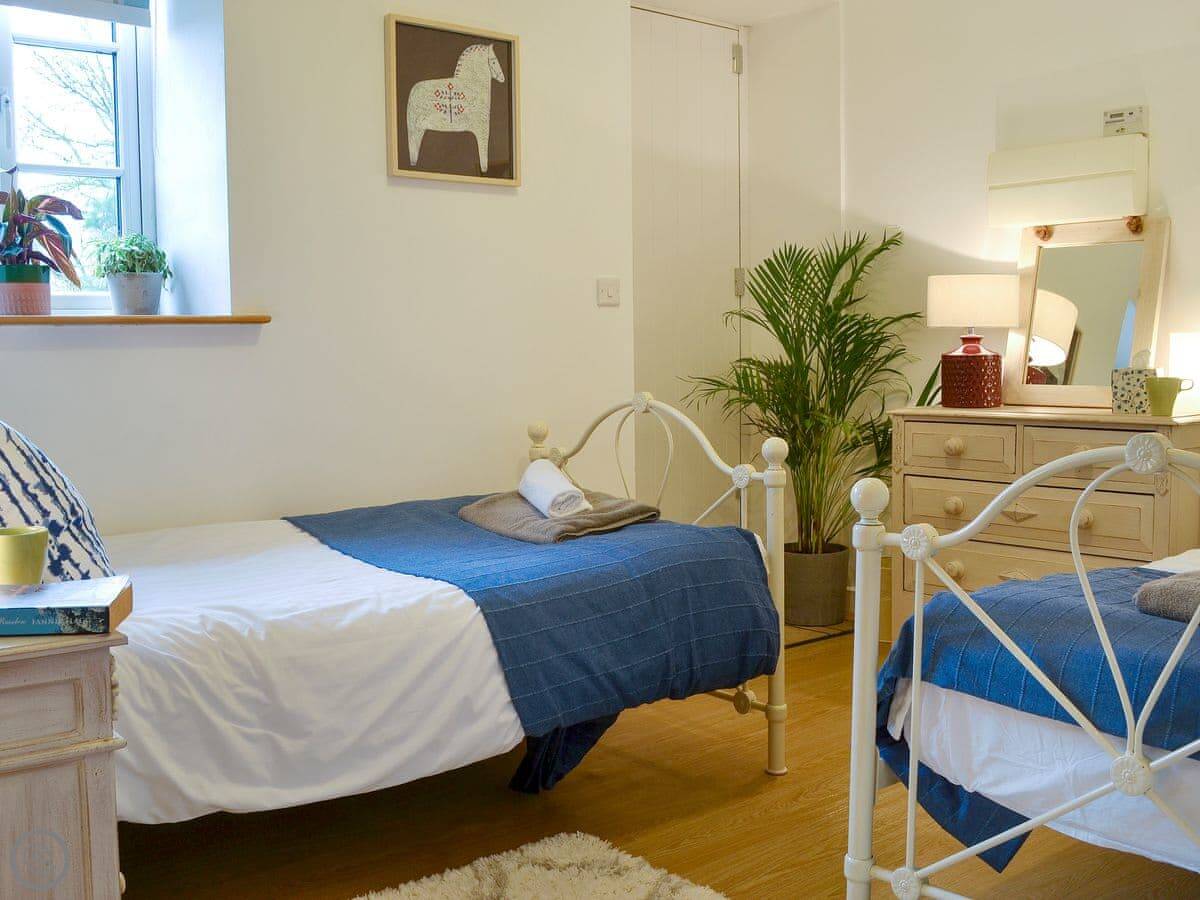 It sleeps four. Two bedrooms, one bathroom. It's a 4 Star place, which means it's comfortable and well kept. The living area is open plan, with a wood burner. The garden patio is enclosed, which is good if you have dogs.