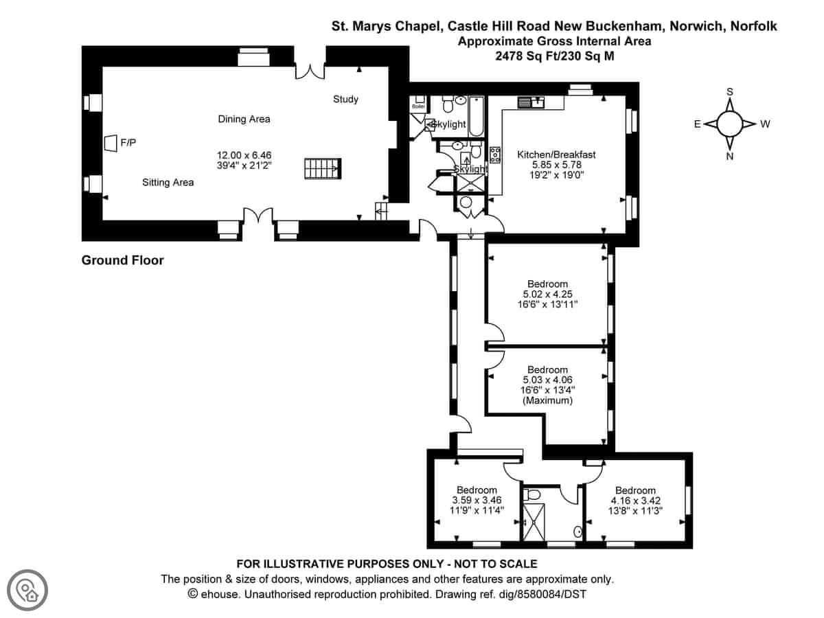Outside is a garden to enjoy exclusively, which abuts the moat and is partly overlooked by the owner’s house. Beyond the chapel’s walls, New Buckenham offers a quaint village atmosphere, inviting exploration of its historic sites and charming local amenities such as a recently opened café to refuel after a day of exploring. Discover the picturesque surroundings, or venture further to explore Norfolk’s diverse attractions, from scenic walks in the countryside to visits to nearby historic landmarks. St Mary’s Chapel beckons as a unique blend of history and modern comfort, inviting you to immerse yourself in the rich tapestry of New Buckenham and create lasting memories in this meticulously renovated 12th-century gem with its stone walls, and unrestricted access to a privately owned, ruined castle, set within a moated area - access to the castle is not exclusive as members of the public can pay to visit. A public footpath runs past the property. Shop and pub 500 yards.