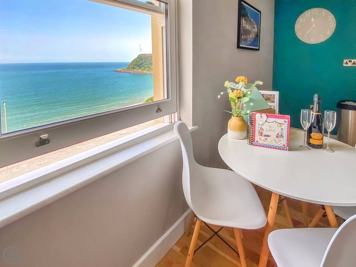 The Lookout is a flat on the third floor, in Scarborough. It sleeps four. Two bedrooms, one bathroom. It's got a 5 Star rating, which means it's well-fitted and comfortable.