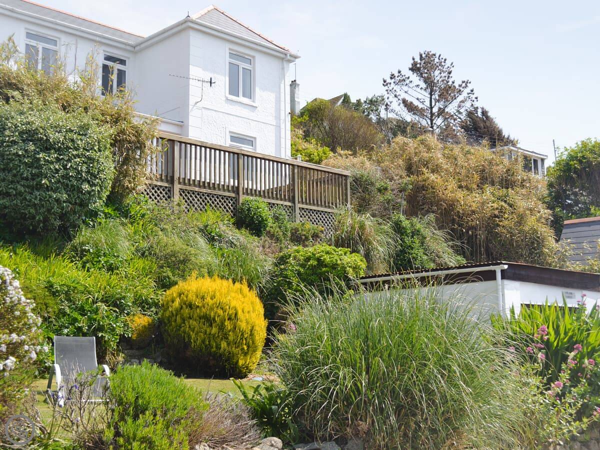 Hillside is the one up at Praa Sands. It's semi-detached, on a bit of a slope. You get a good view over the beach and out to sea. It's about a ten minute walk down the shared path to get to the sand.