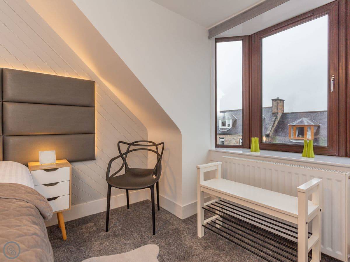 On the mezzanine floor Ben Shea has a snug garden room, which leads to the private garden, also with motion sensor lighting. A lovely peaceful spot to wind down with a refreshing drink after the day’s adventures. The location is perfect for the whisky trail as Dufftown is the single malt capital. It is also ideal for outdoor enthusiasts with many walks, hills and open spaces to be explored. Stunning beaches are a short driving distance on the beautiful Moray coast. Shops, pubs and restaurants 200 yards.