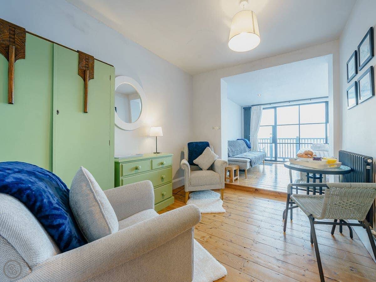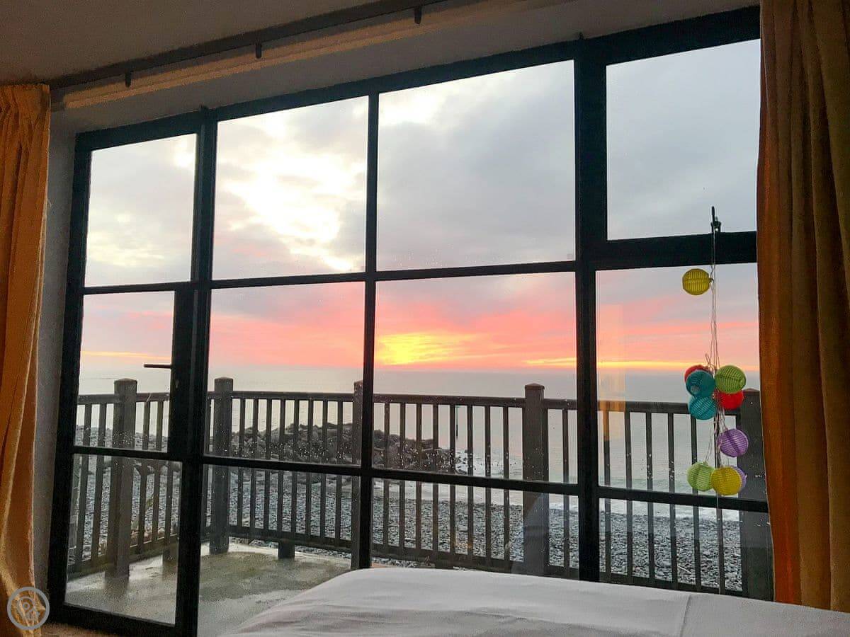 The main thing is you’re right on the beach. It’s a big sandy beach. You step out from the deck area onto the pebbles and sand. You get good views from the balconies. We’ve seen dolphins from there, but it’s luck of the draw.