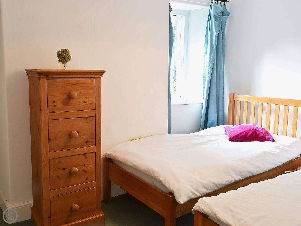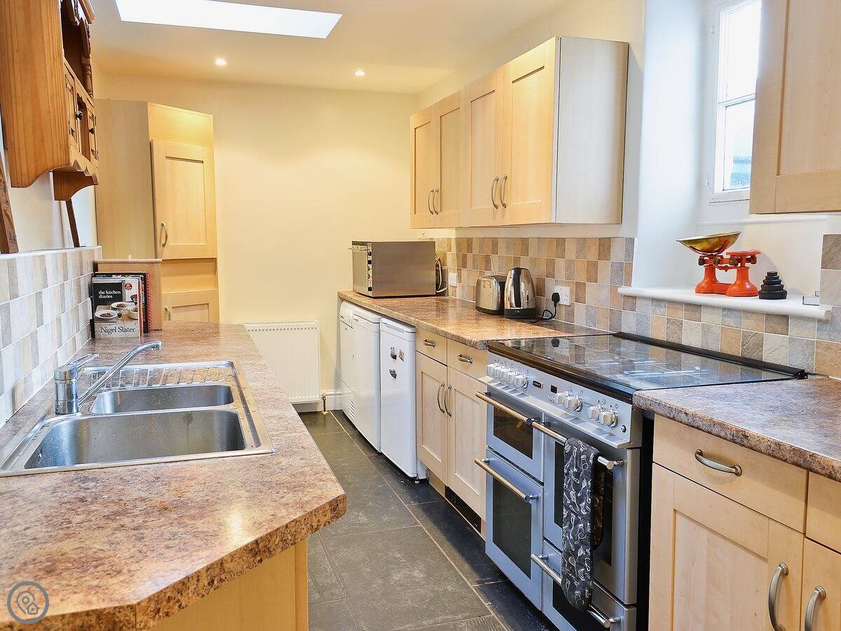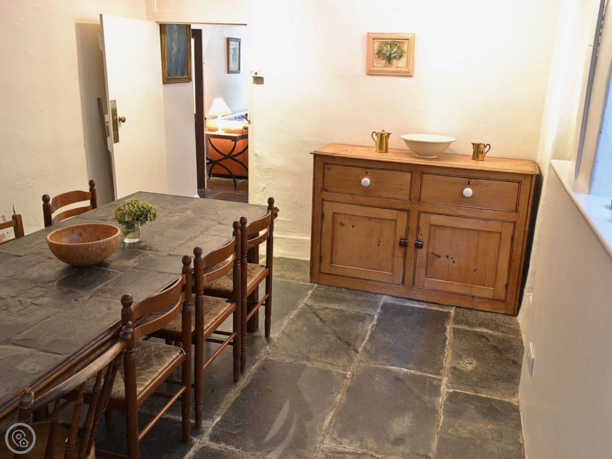 It sleeps ten people in five bedrooms. There are two bathrooms and a separate shower. The stairs are narrow and steep, it's that kind of house. It's got a woodburning stove for cooler evenings, and there's a dishwasher and washing machine. WiFi is there. Bedding and towels are included. You can bring up to three dogs.