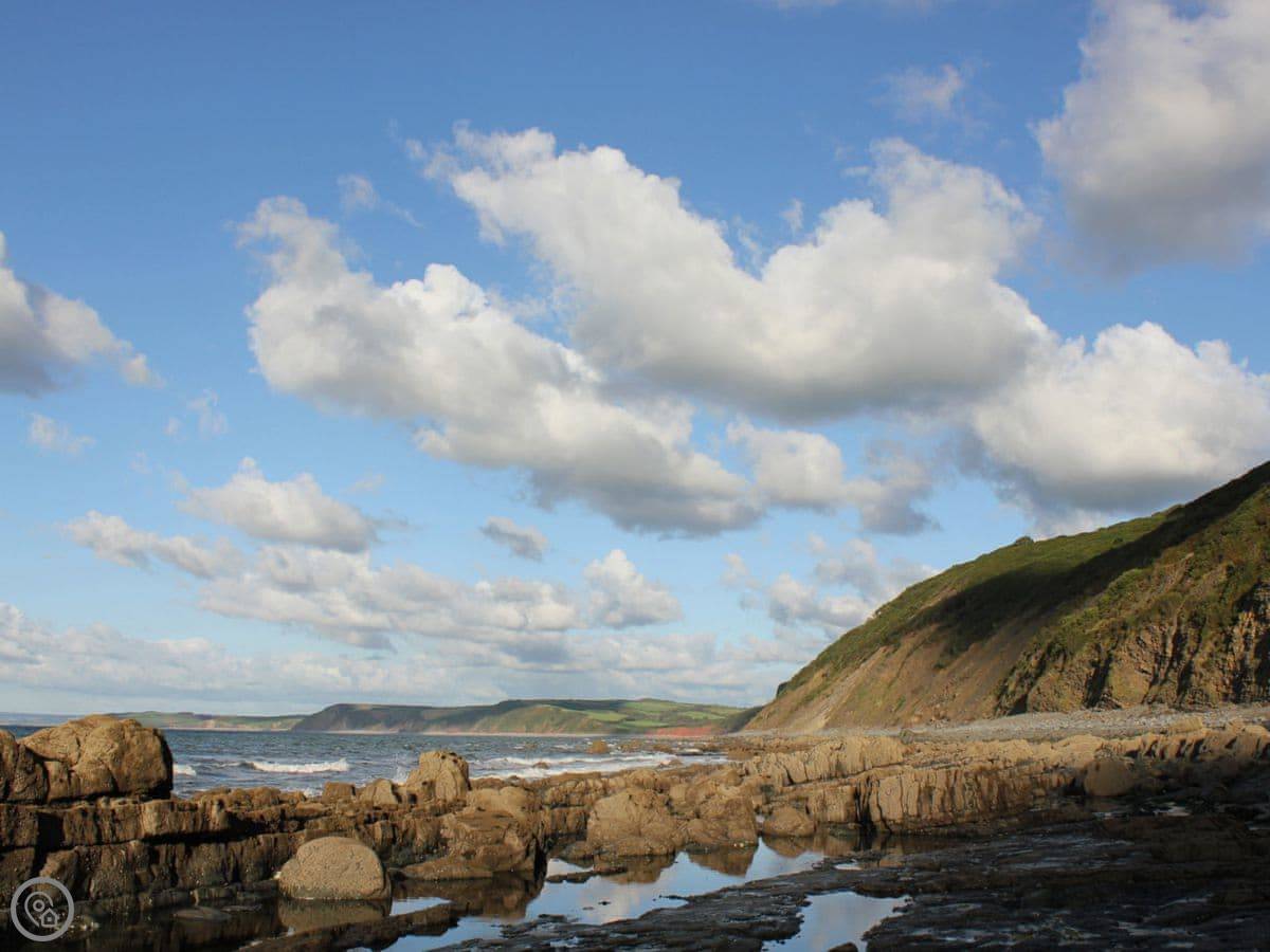 The beach is about a three minute walk away. You go down a steep cliff path from the garden gate. It’s sand and shingle, good for rock pooling. You can see Lundy Island from there on a clear day.