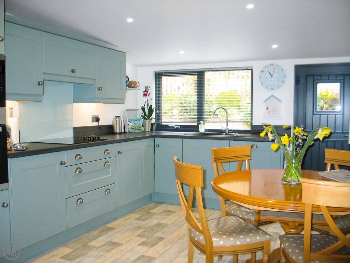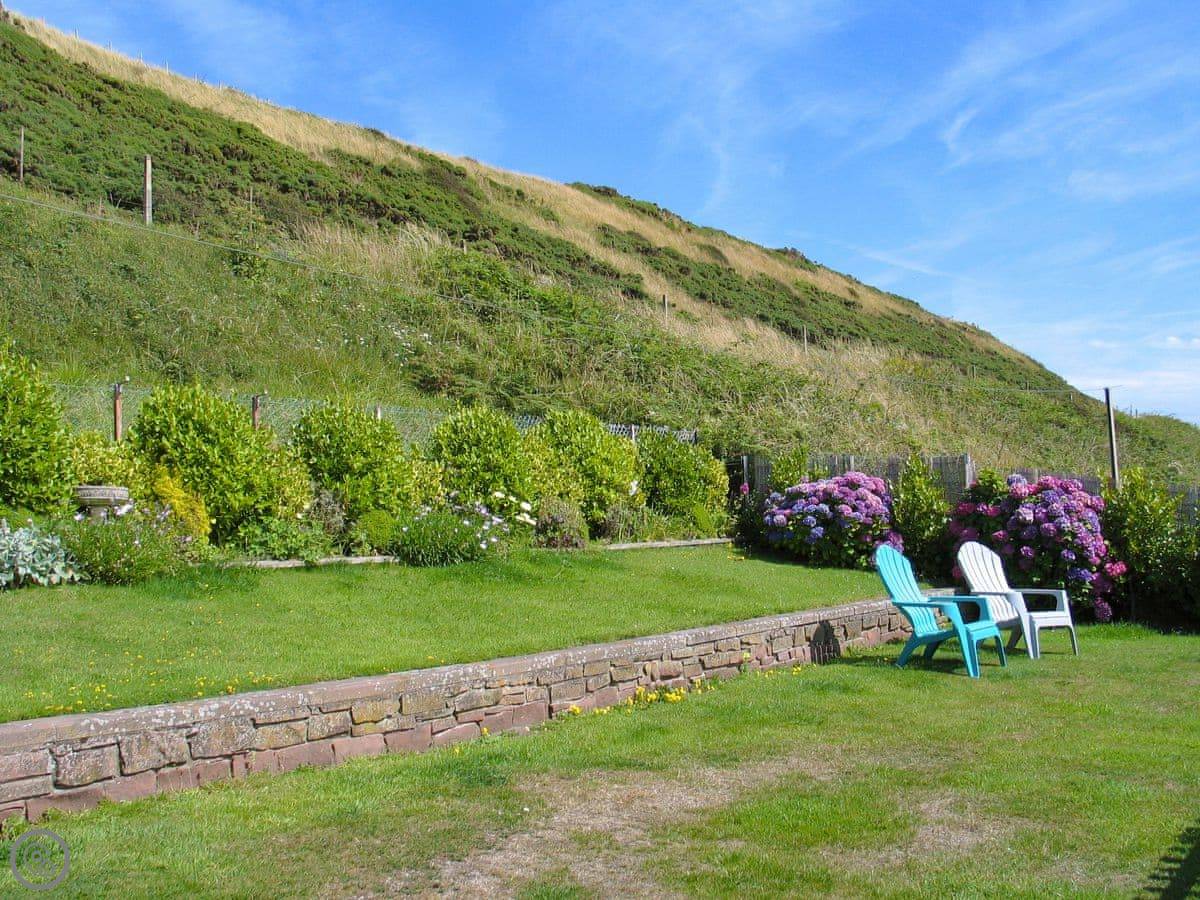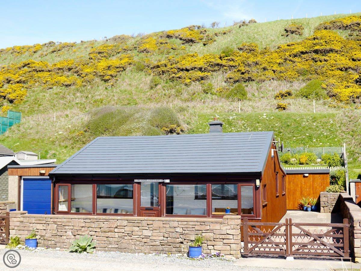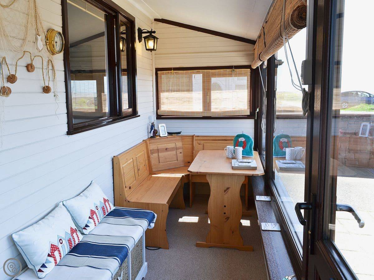 The whole front of the cottage is a sun room. You sit in there and watch the sea, which is just a few yards away. You can hear it from the bedrooms too.
