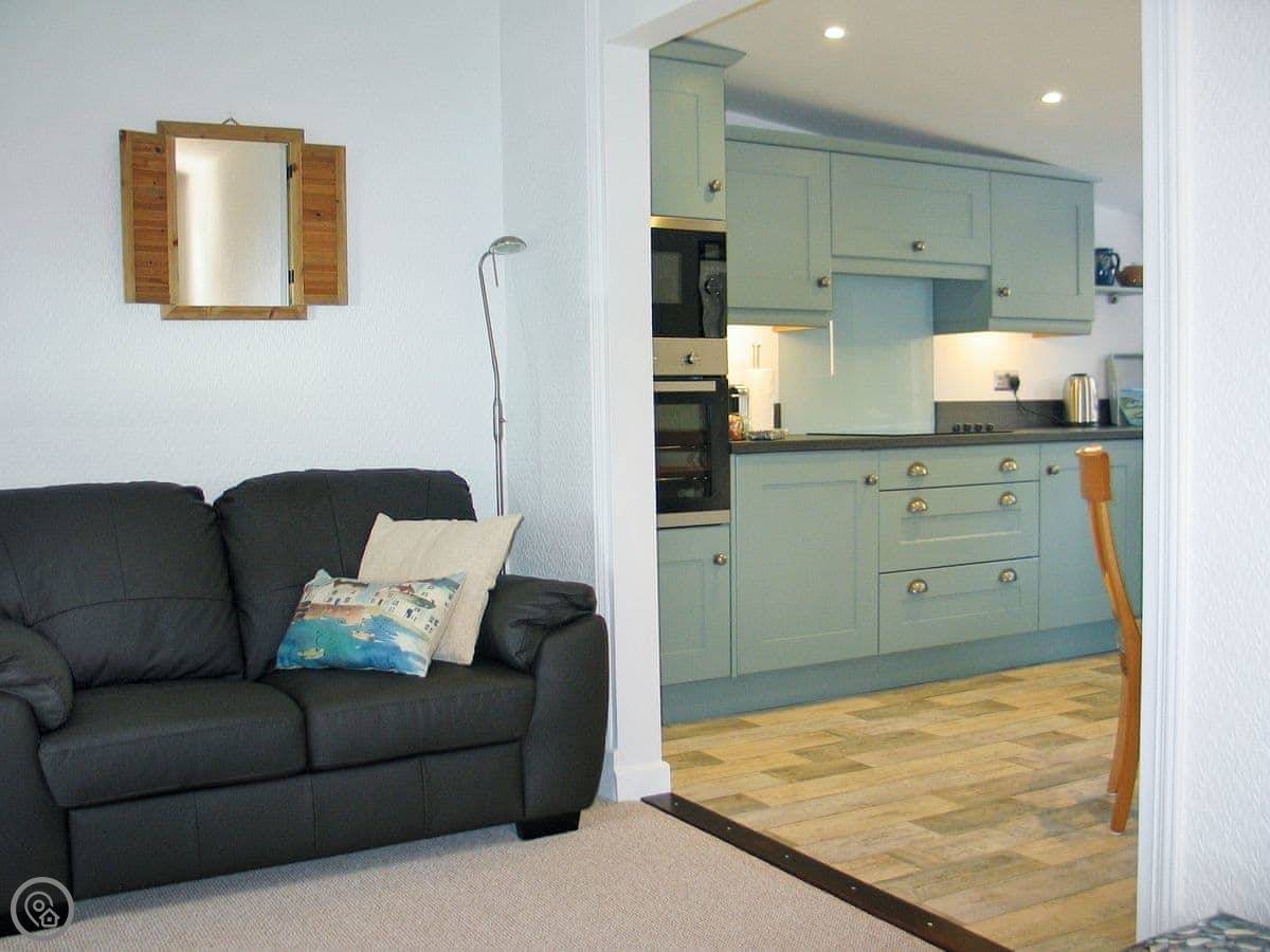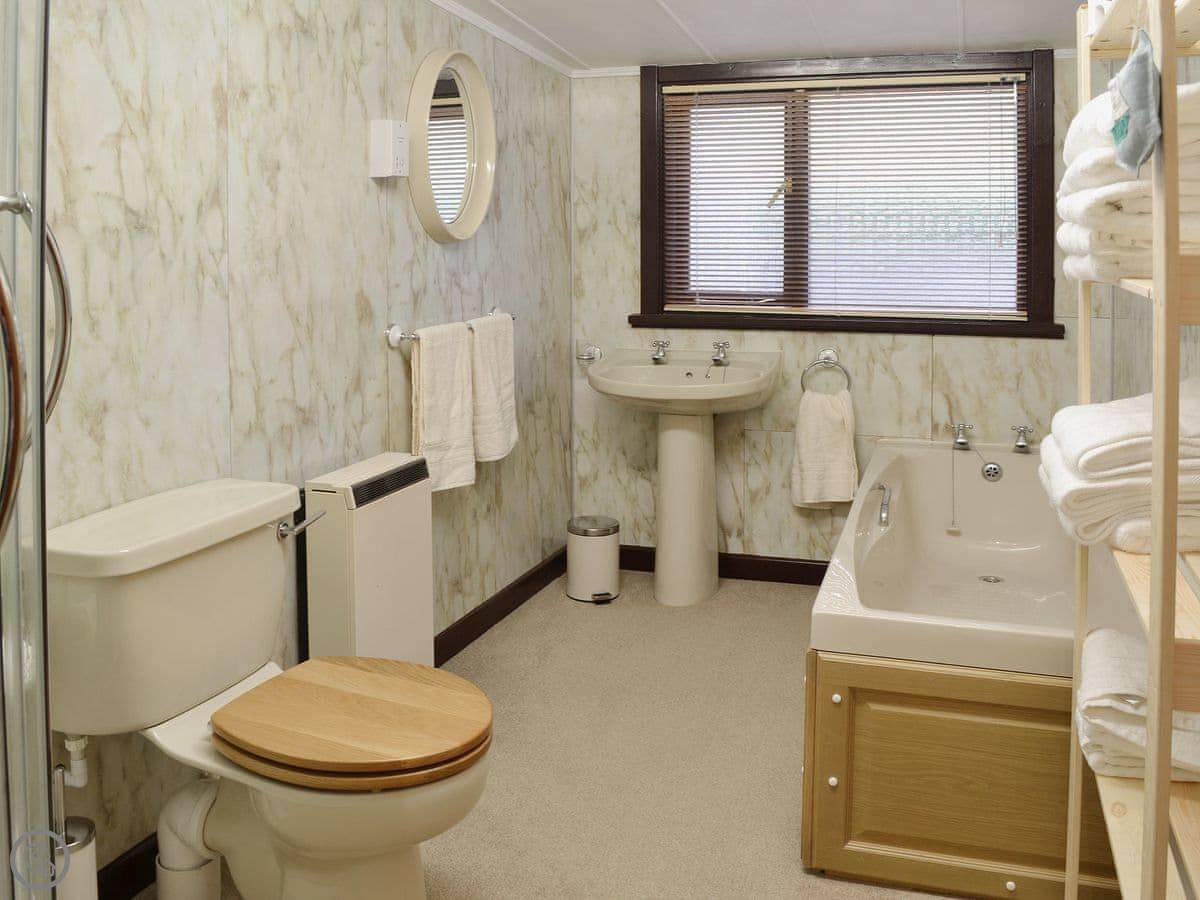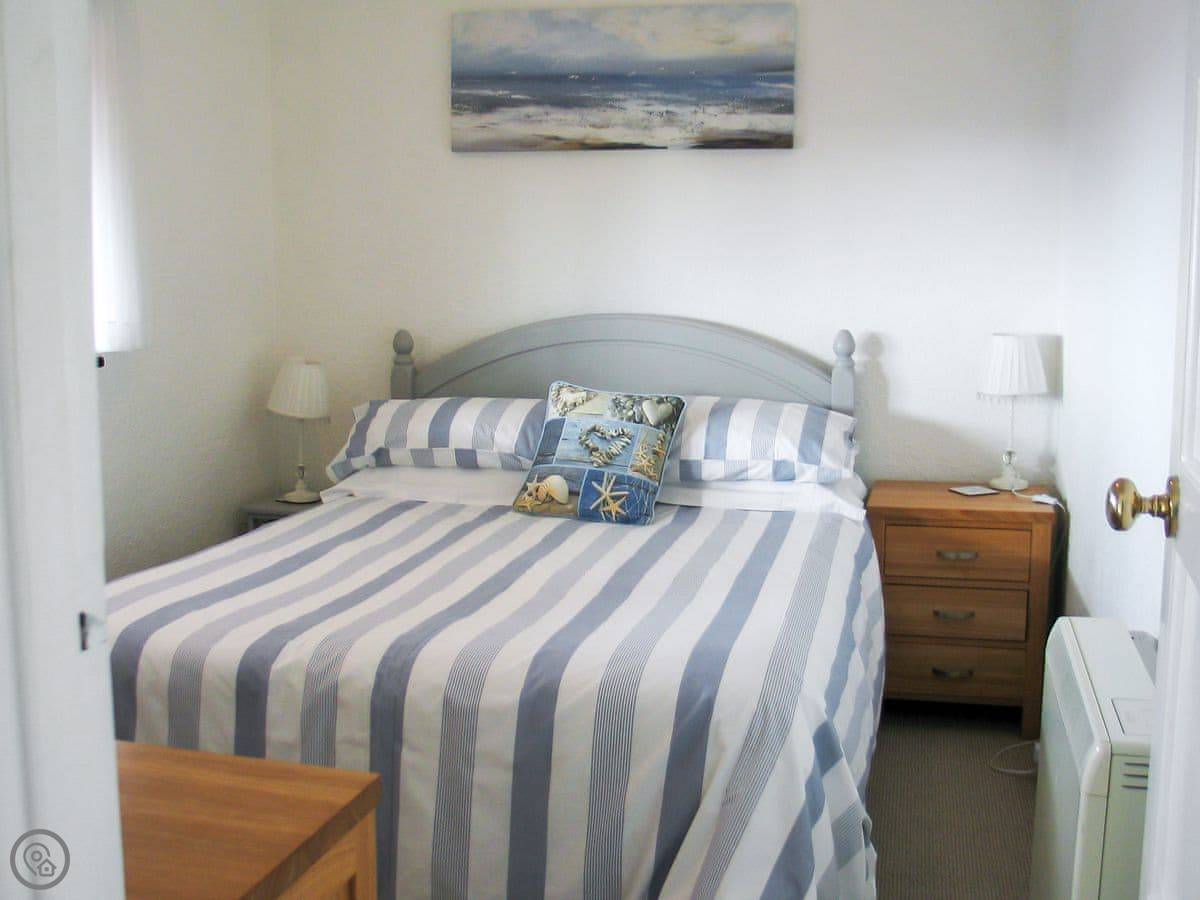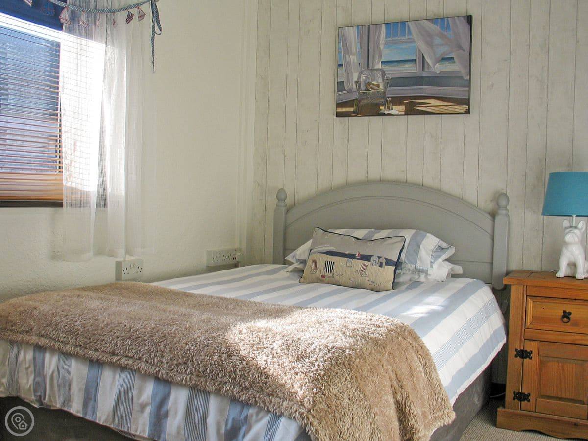 It sleeps five in three bedrooms. Two of them look out to sea. There are two bathrooms, one with a shower. It's got a 4 Star rating, so it's comfortable and well-equipped. It's heated for year-round use.
