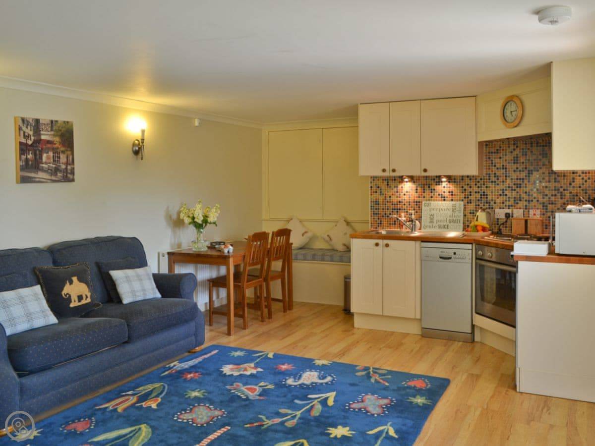 The Wheelhouse is in Kirk Yetholm, in the Scottish Borders. It's a ground floor apartment that used to be the wheel room of an old grain mill. The main room is open plan and gets good light.