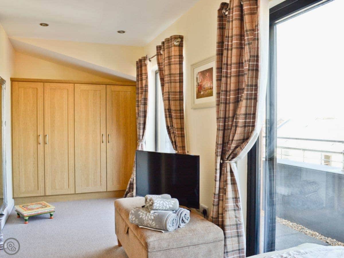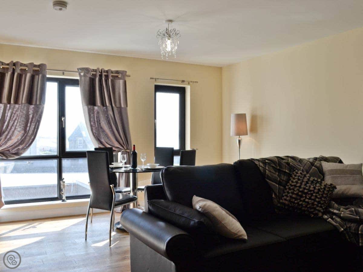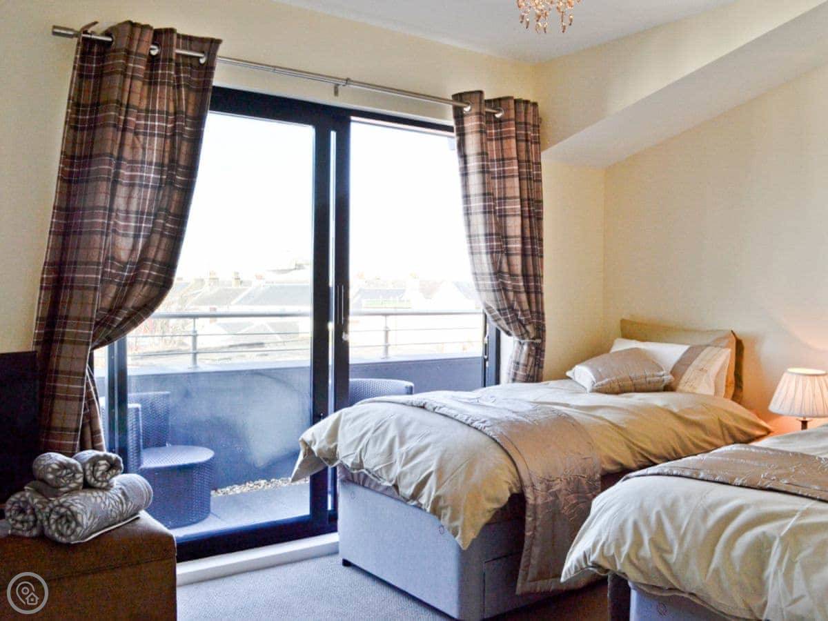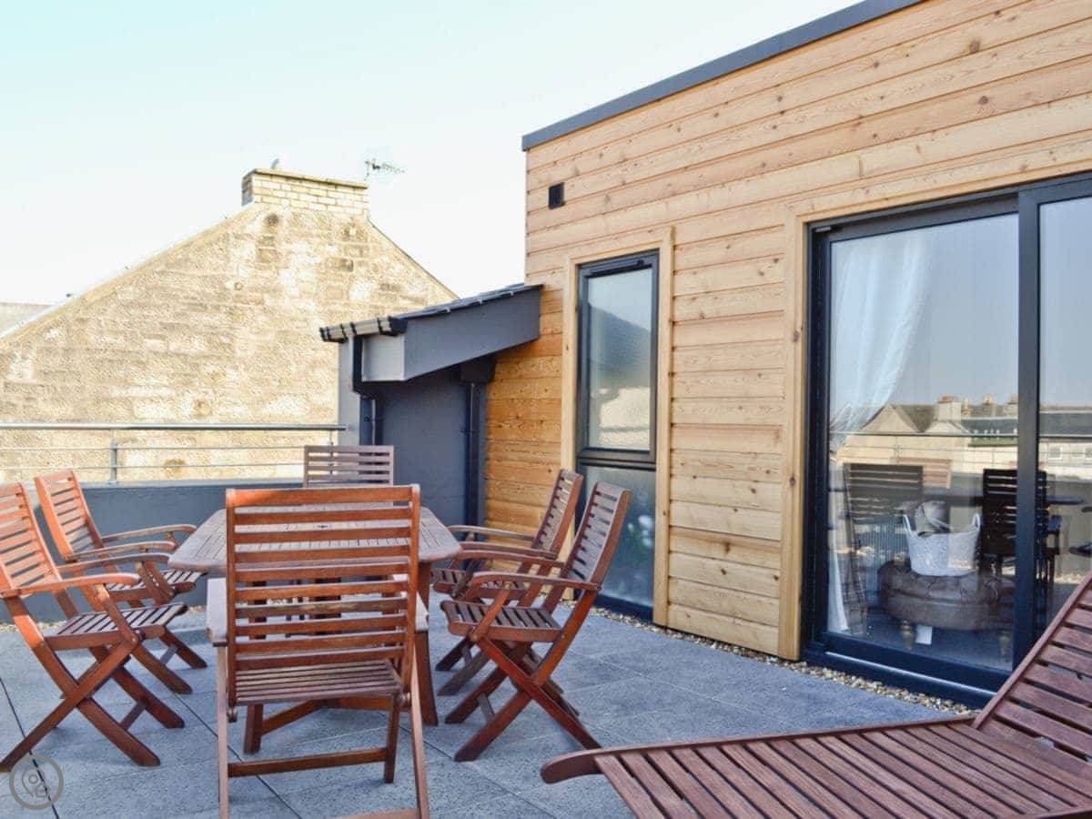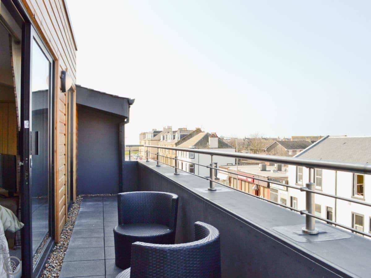 The Penthouse is, as it sounds, at the top of the building. It's on the seafront in Troon. You can see the sea from the front room and you've got your own roof terrace out the back.