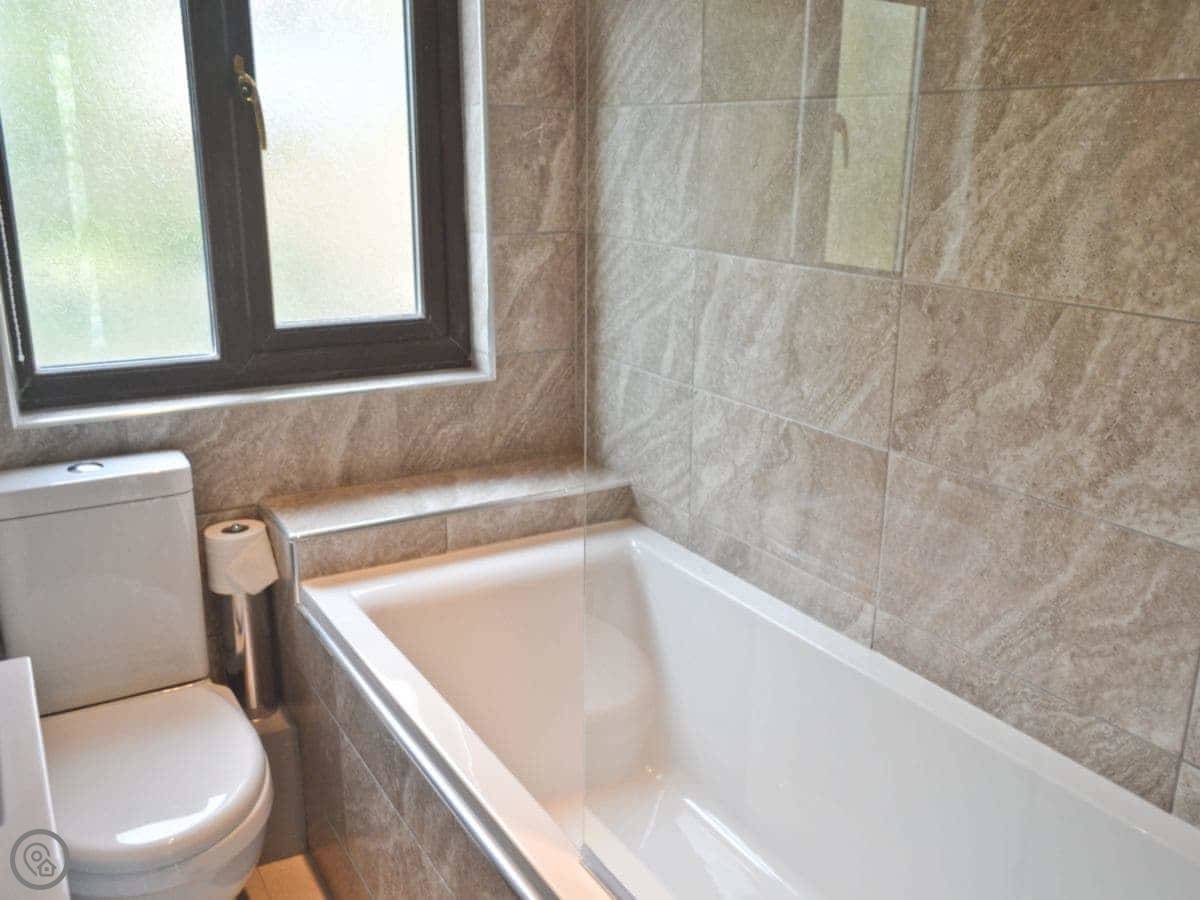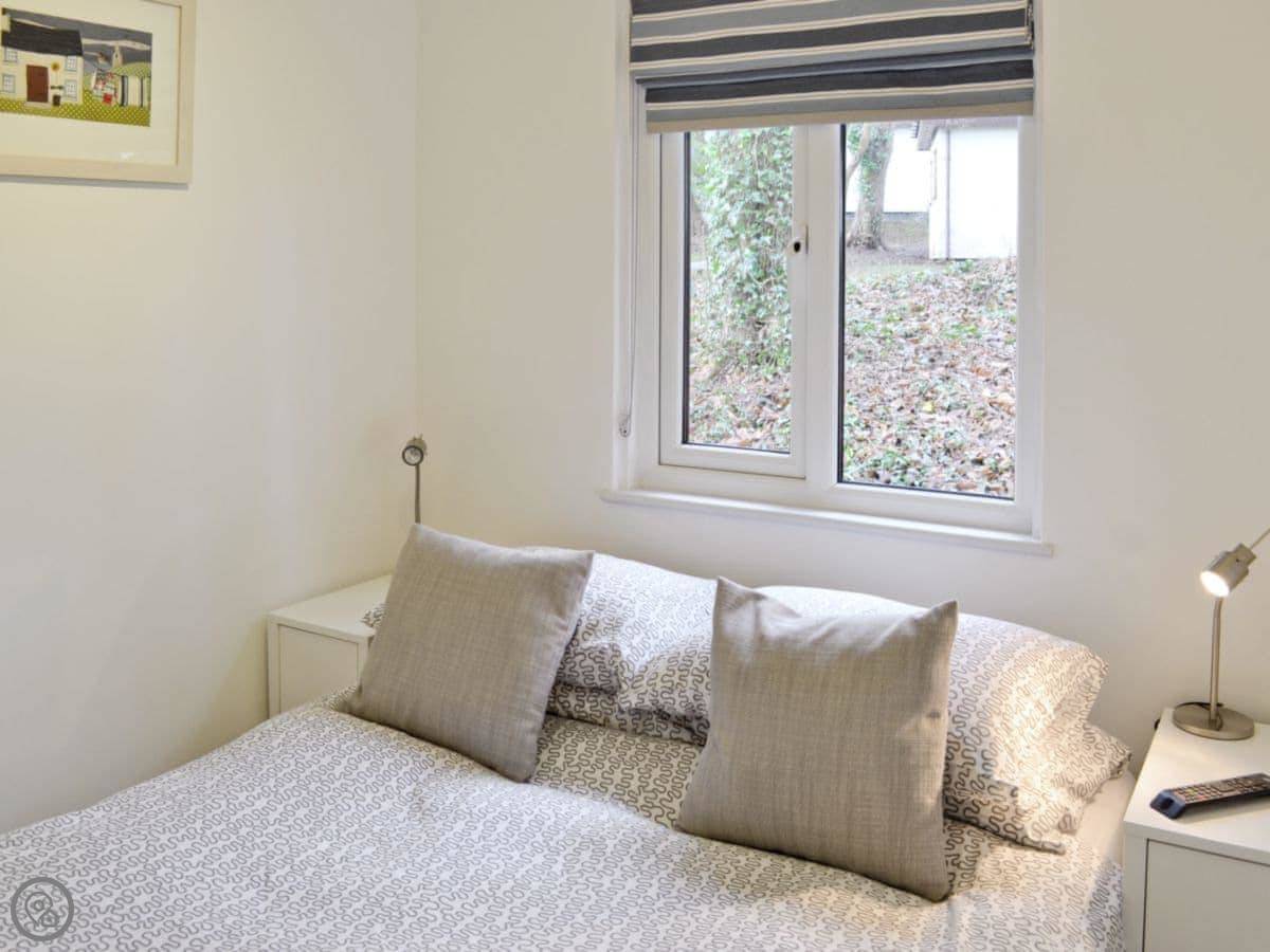It sleeps four in two bedrooms, with one bathroom. It has a 4 Star rating. Everything is on the ground floor. It's comfortable and warm. The decor is colourful. The main living area is open plan. You look out onto trees.