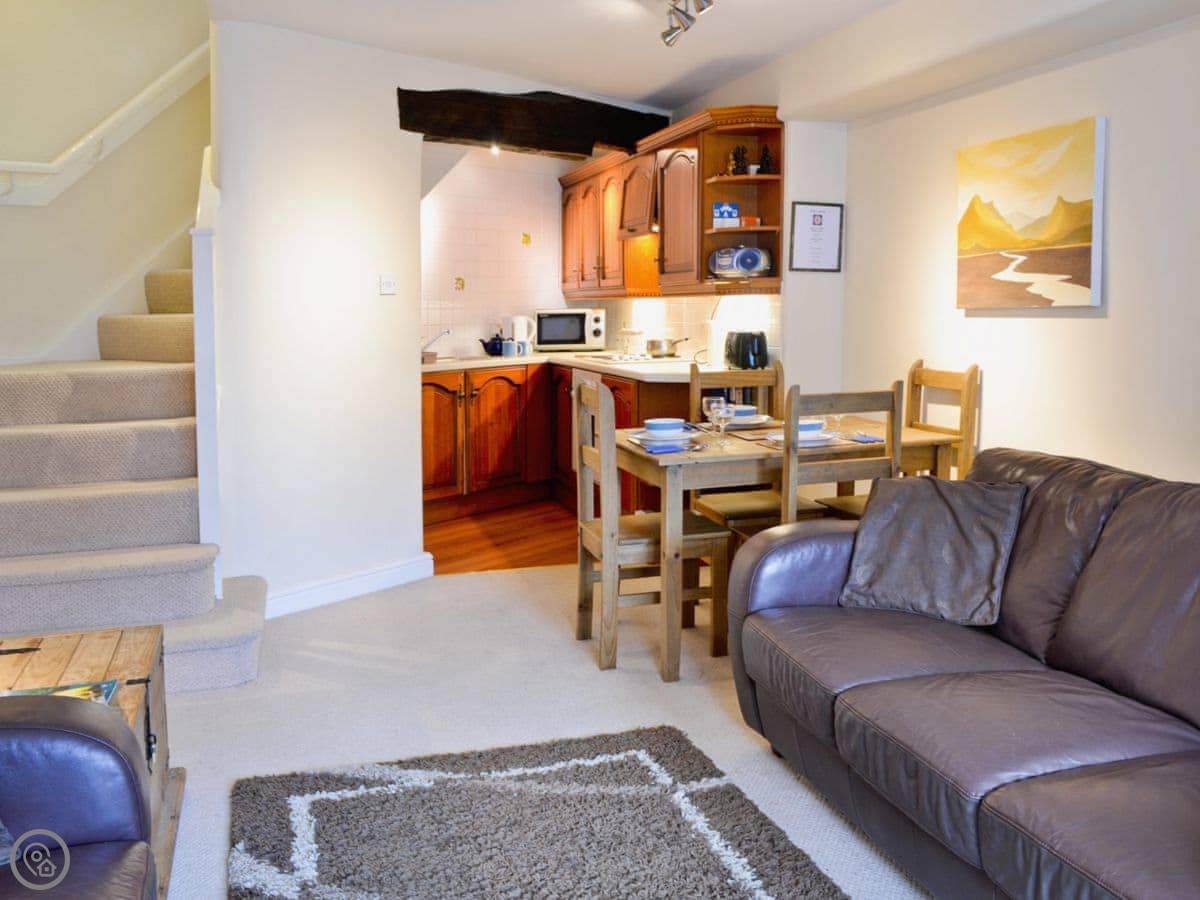 This is Beech Cottage. It's right in the middle of Windermere town. You go down a little side lane behind the shops to get to it. It’s quiet there, but you’re only a minute's walk from the main street whenever you want it.