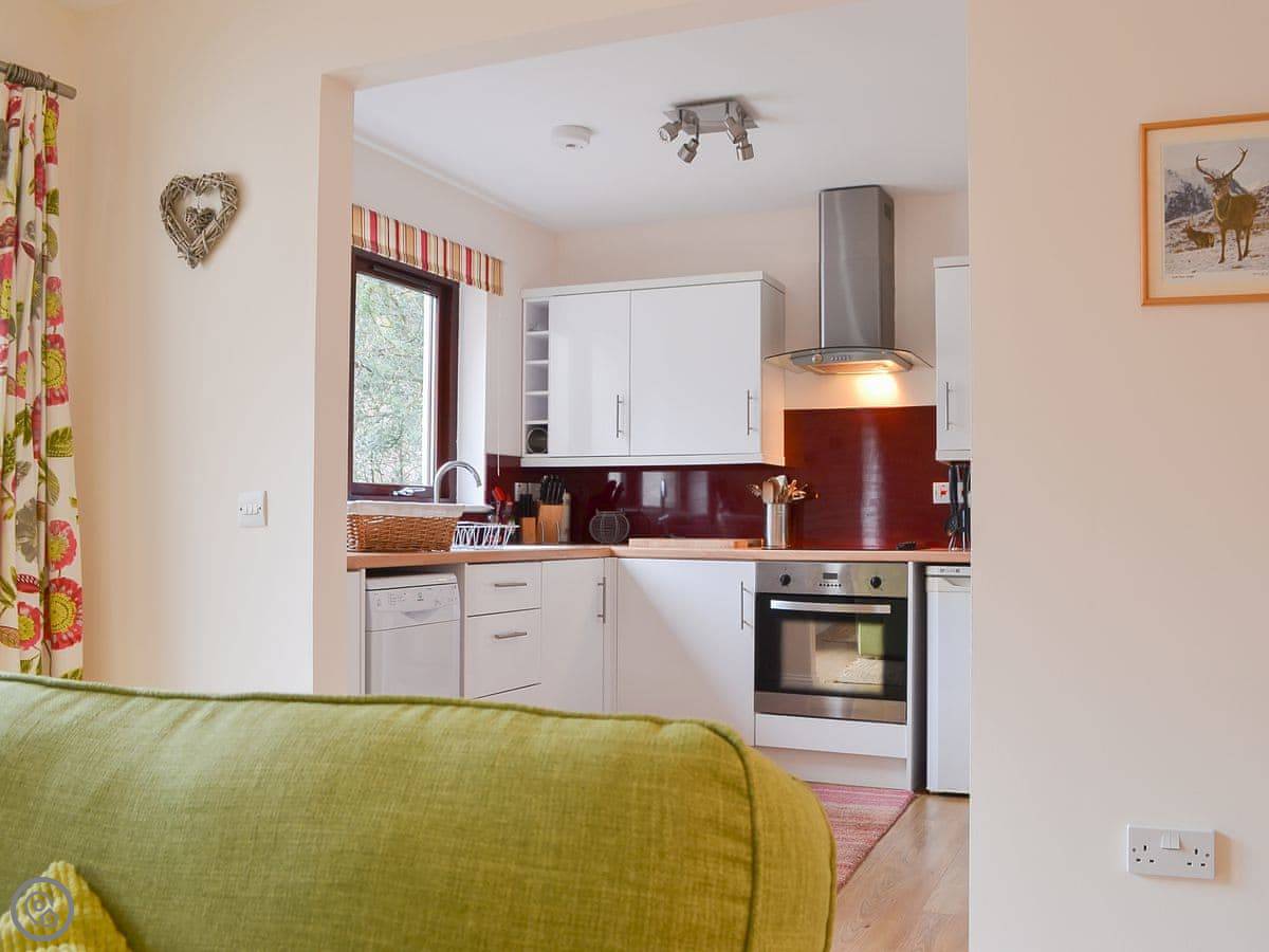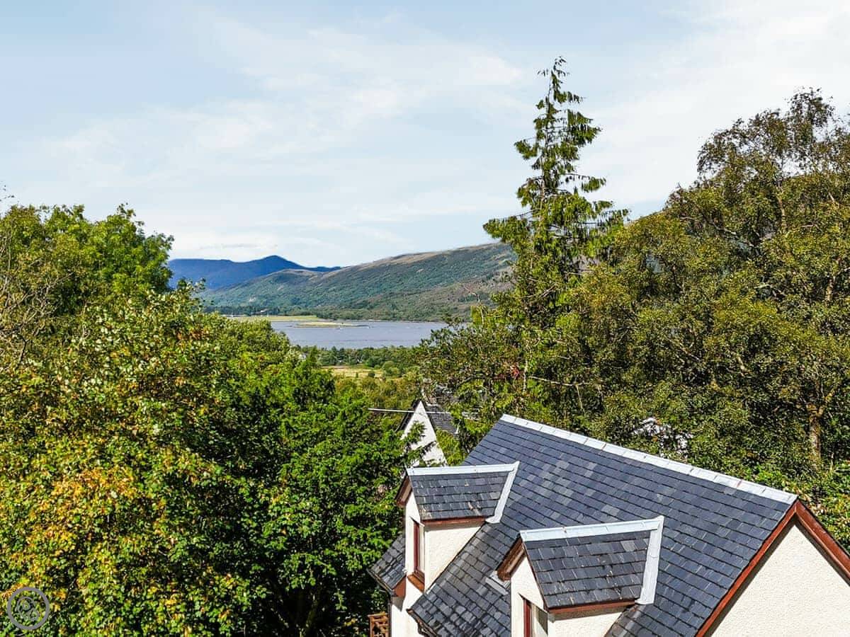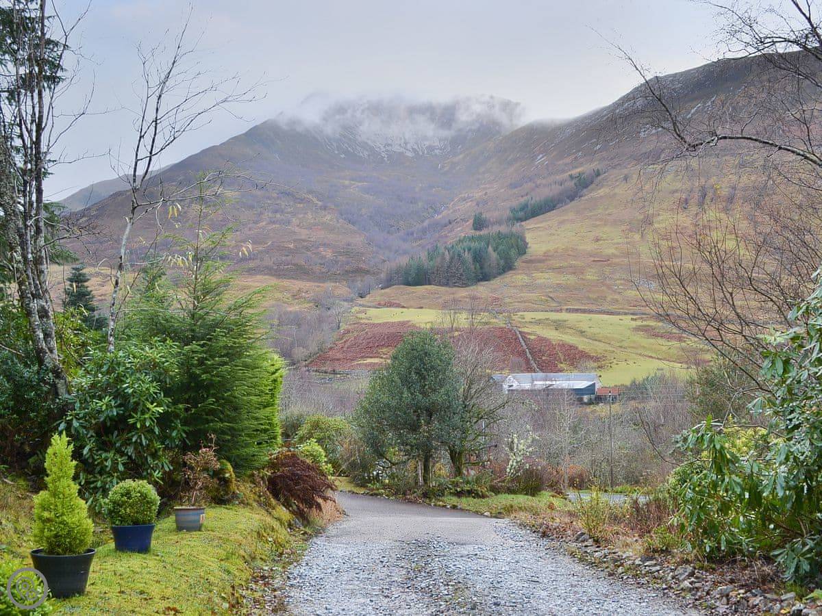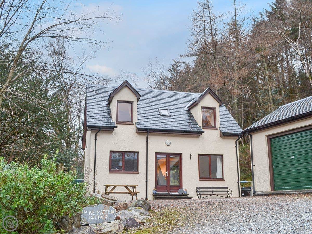 Pine Marten Cottage is in Ballachulish, near Glencoe. It's detached, up a private lane with trees all around. It feels quiet but you're only a few minutes' walk from the village. There's a supermarket, a couple of places to eat, and a swimming pool there.
