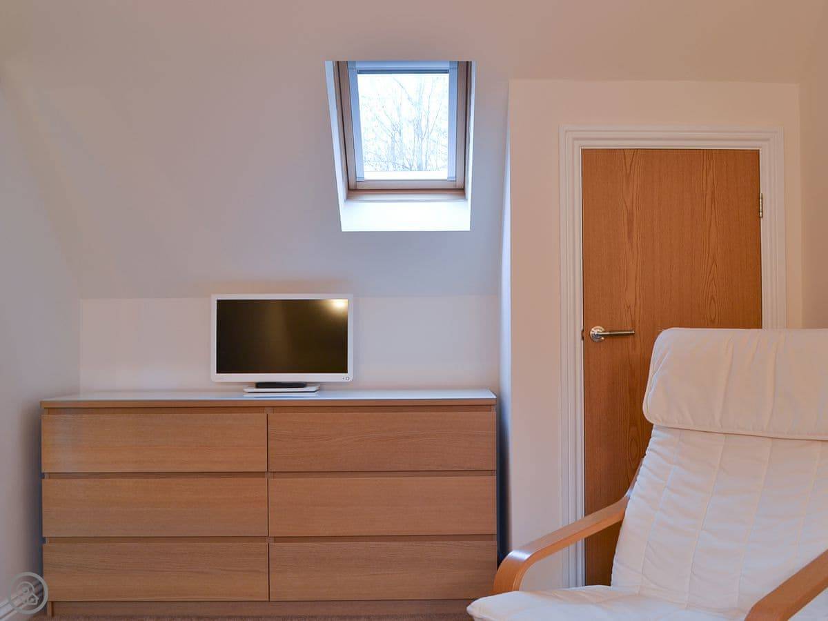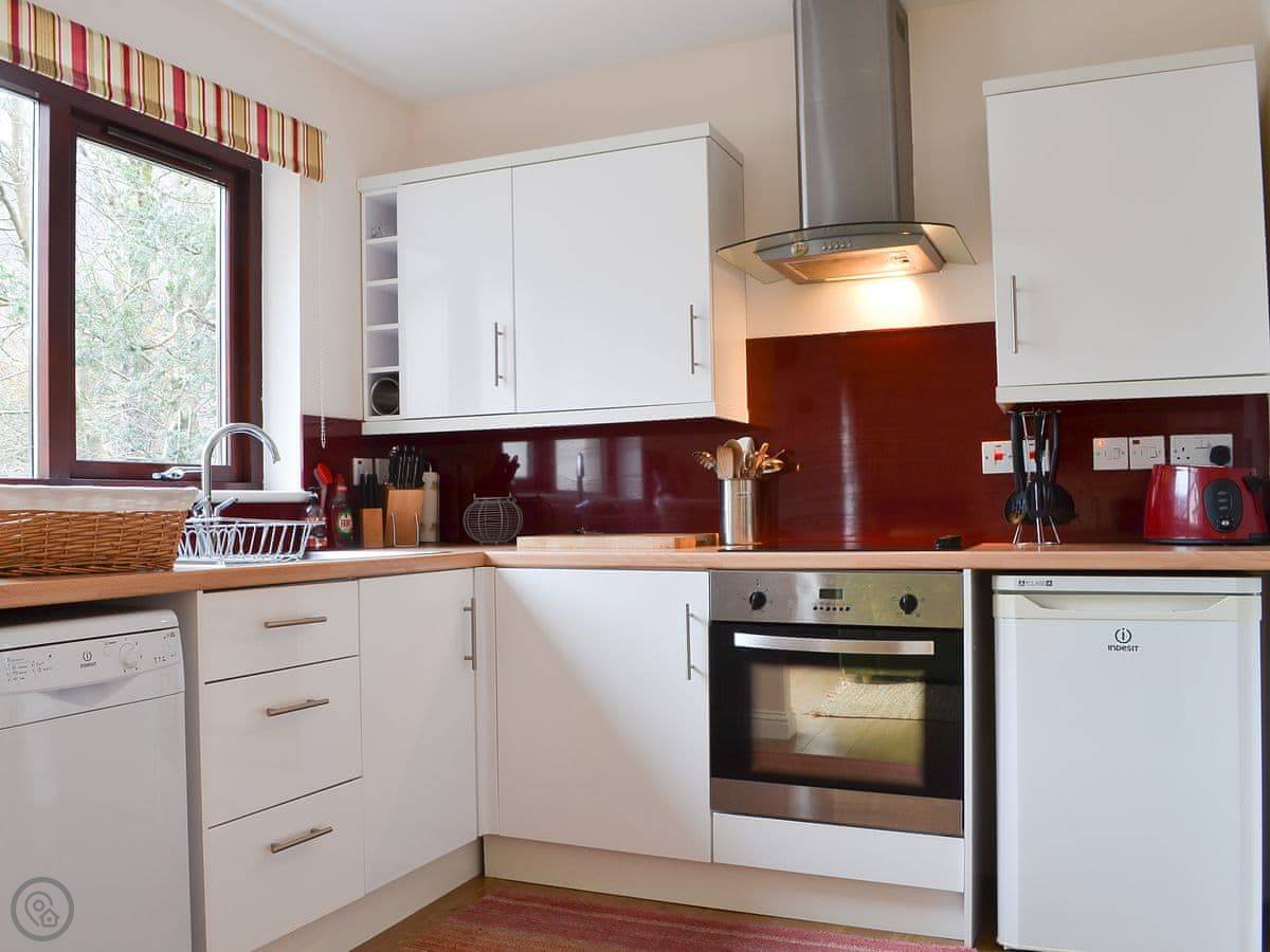 Inside, it's open plan. There's a washing machine, dishwasher, WiFi, and TV. Bedding and towels are included. There's parking right there. We can provide a highchair and a stairgate.