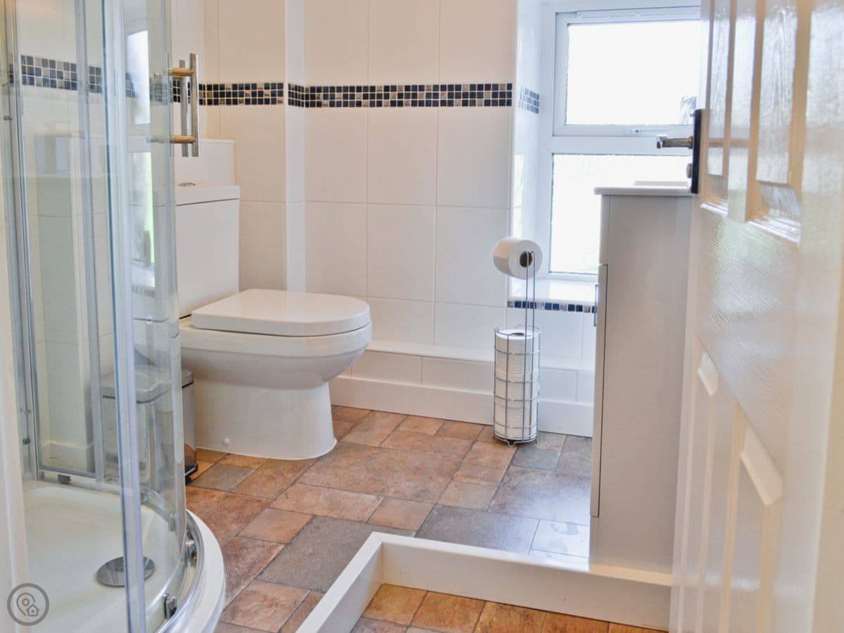 It's a two-up two-down sort of house. Sleeps four in two bedrooms. One bathroom with a shower. It's got a 4 Star rating so it's comfortable, but not a show home. It's full of old beams. Watch your head on a couple of them.