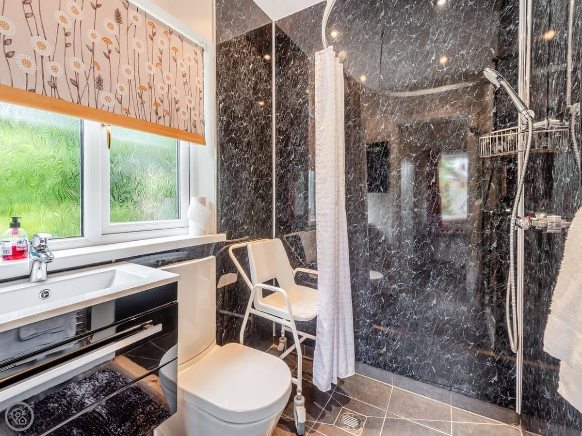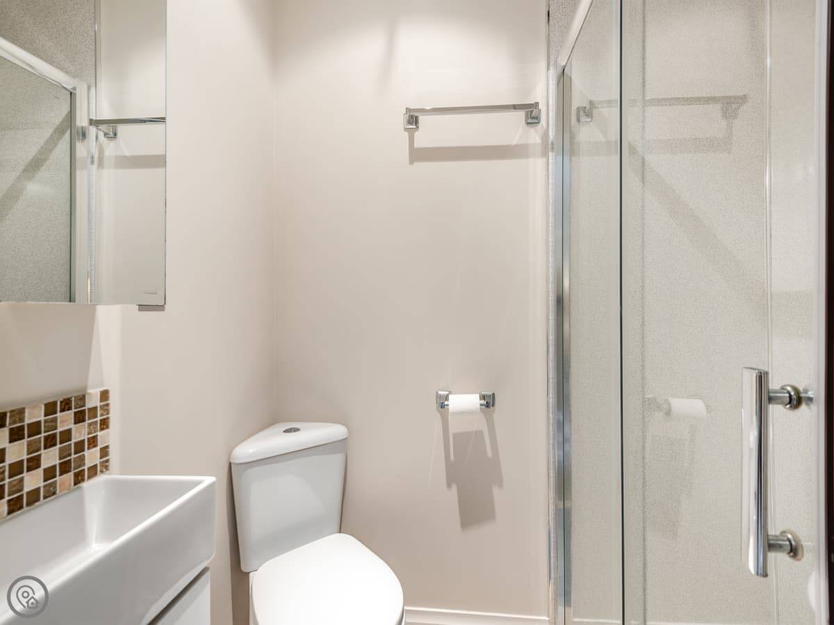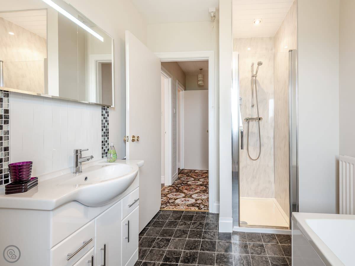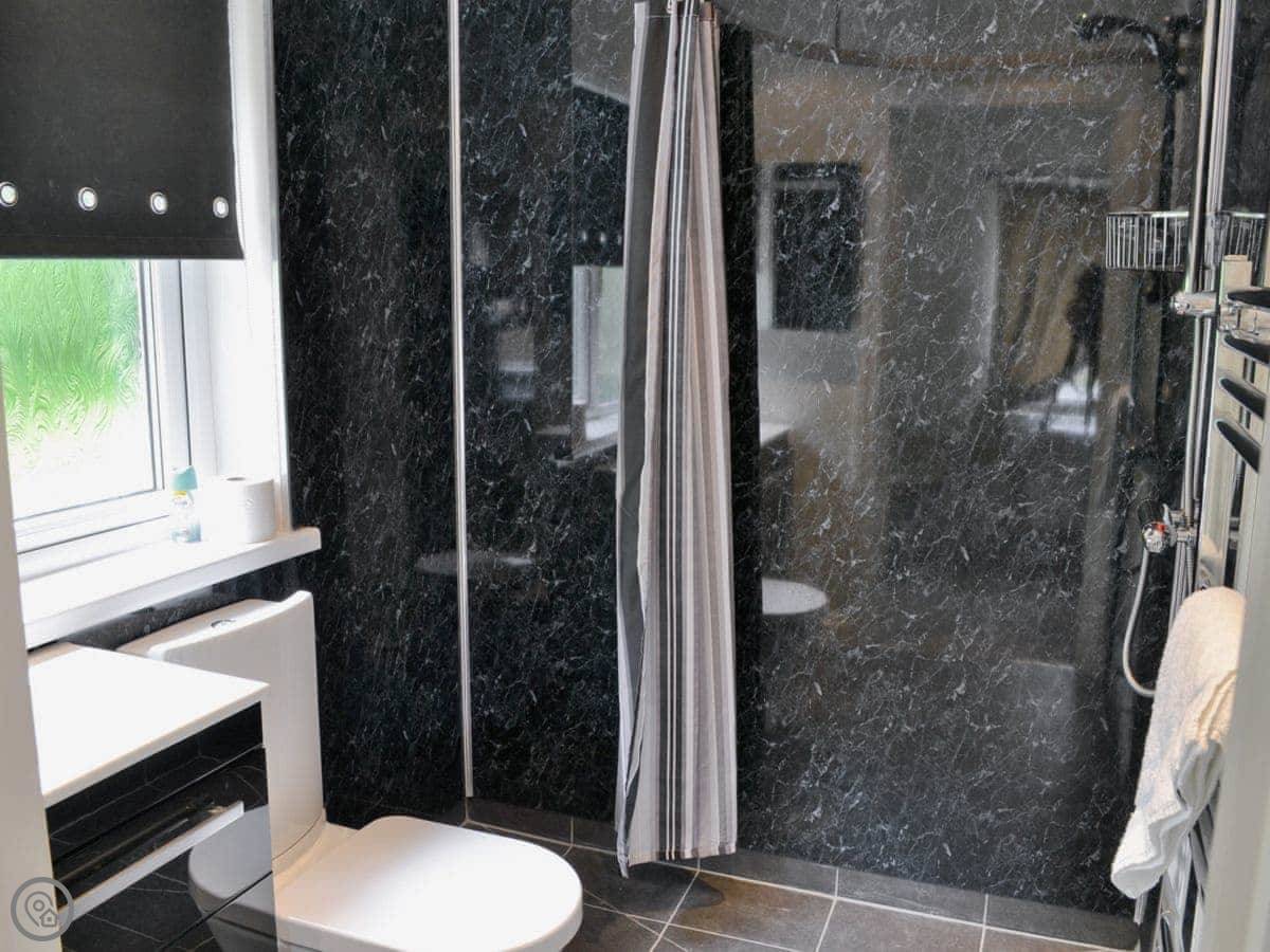 It sleeps six, in three bedrooms. Each bedroom has its own bathroom, which helps with mornings. One's a wet room, which is good if you've got anyone with mobility issues. It's got a 4 Star rating, which means it's well finished and comfortable. Everything's clean and works.