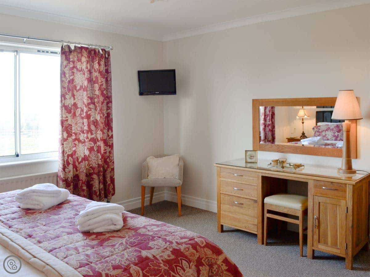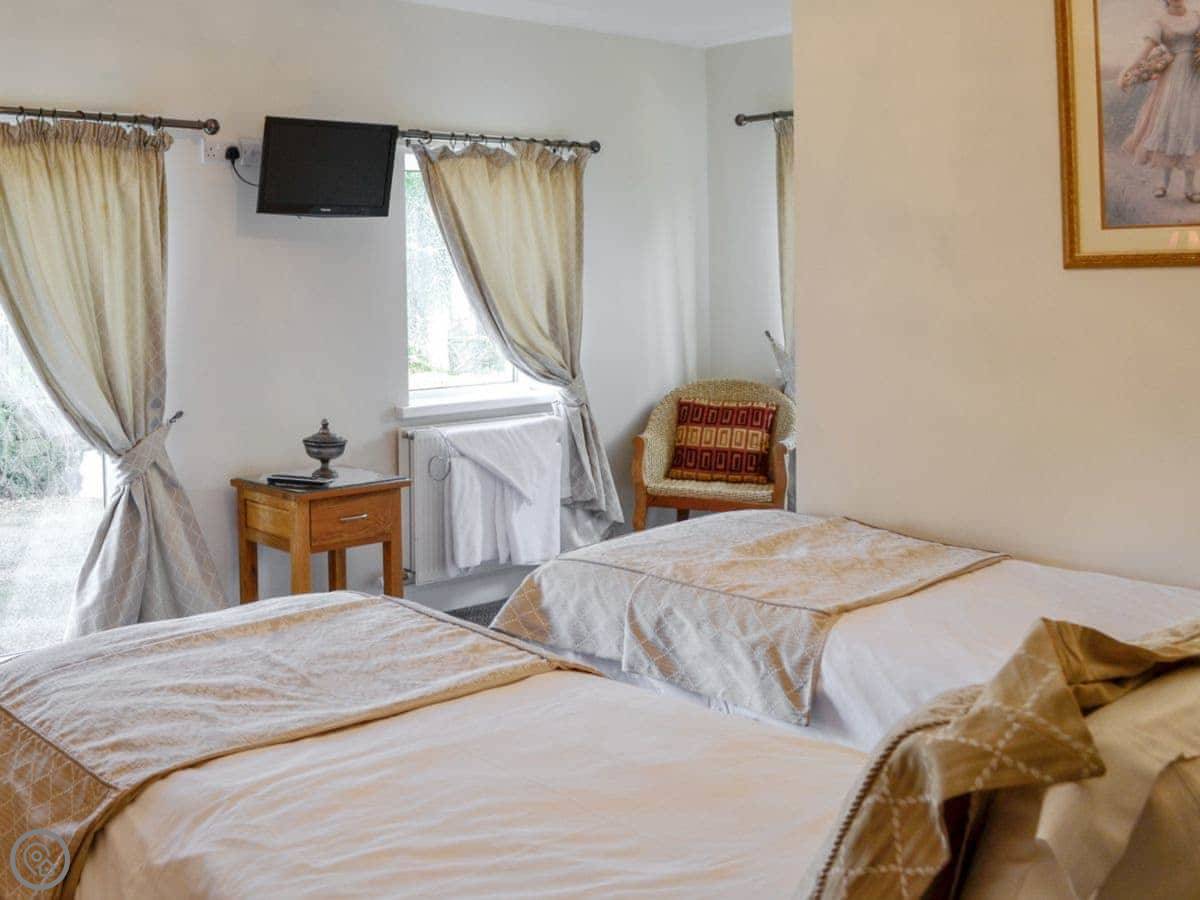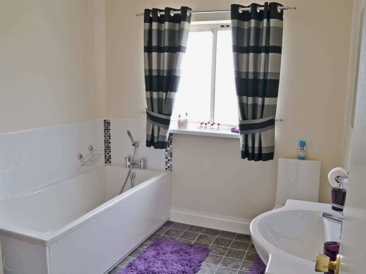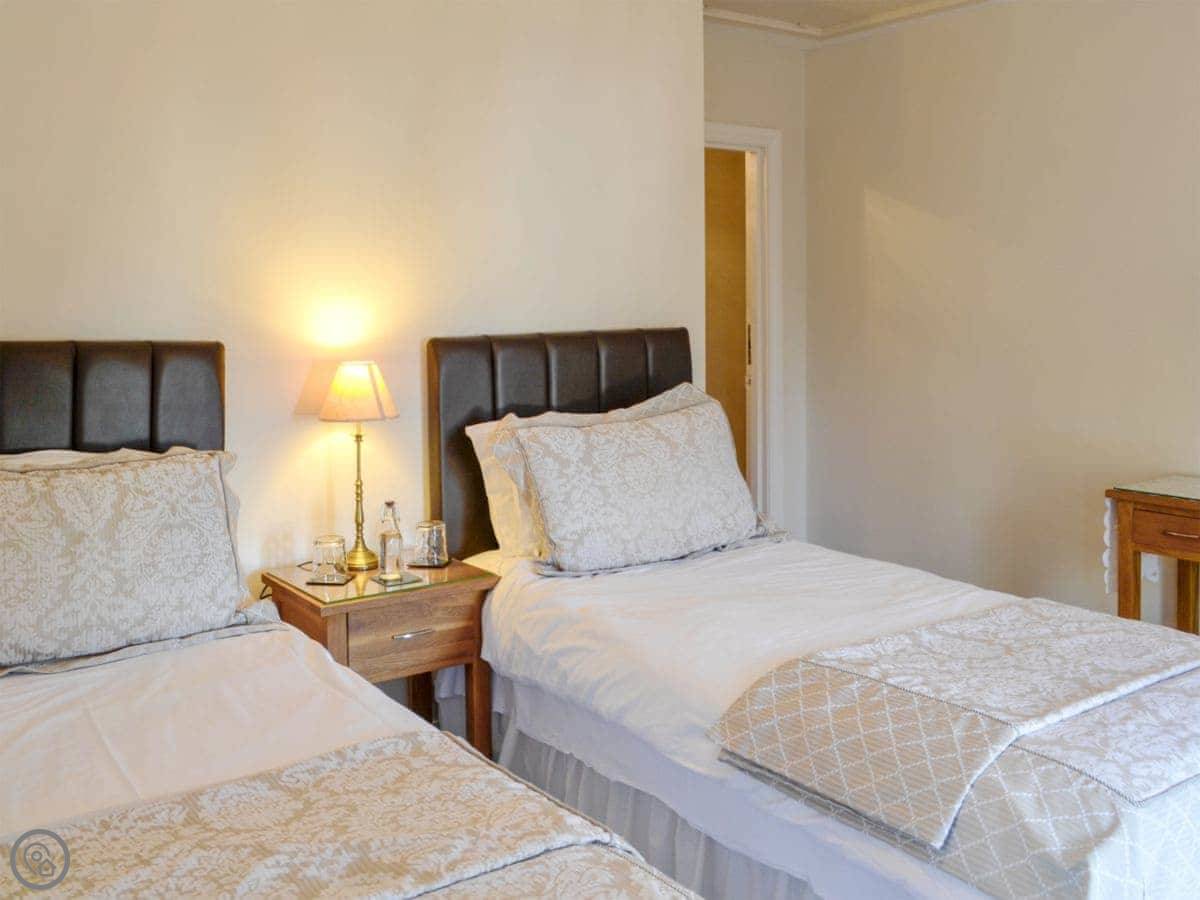 It sleeps six, in three bedrooms. Each bedroom has its own bathroom, which helps with mornings. One's a wet room, which is good if you've got anyone with mobility issues. It's got a 4 Star rating, which means it's well finished and comfortable. Everything's clean and works.